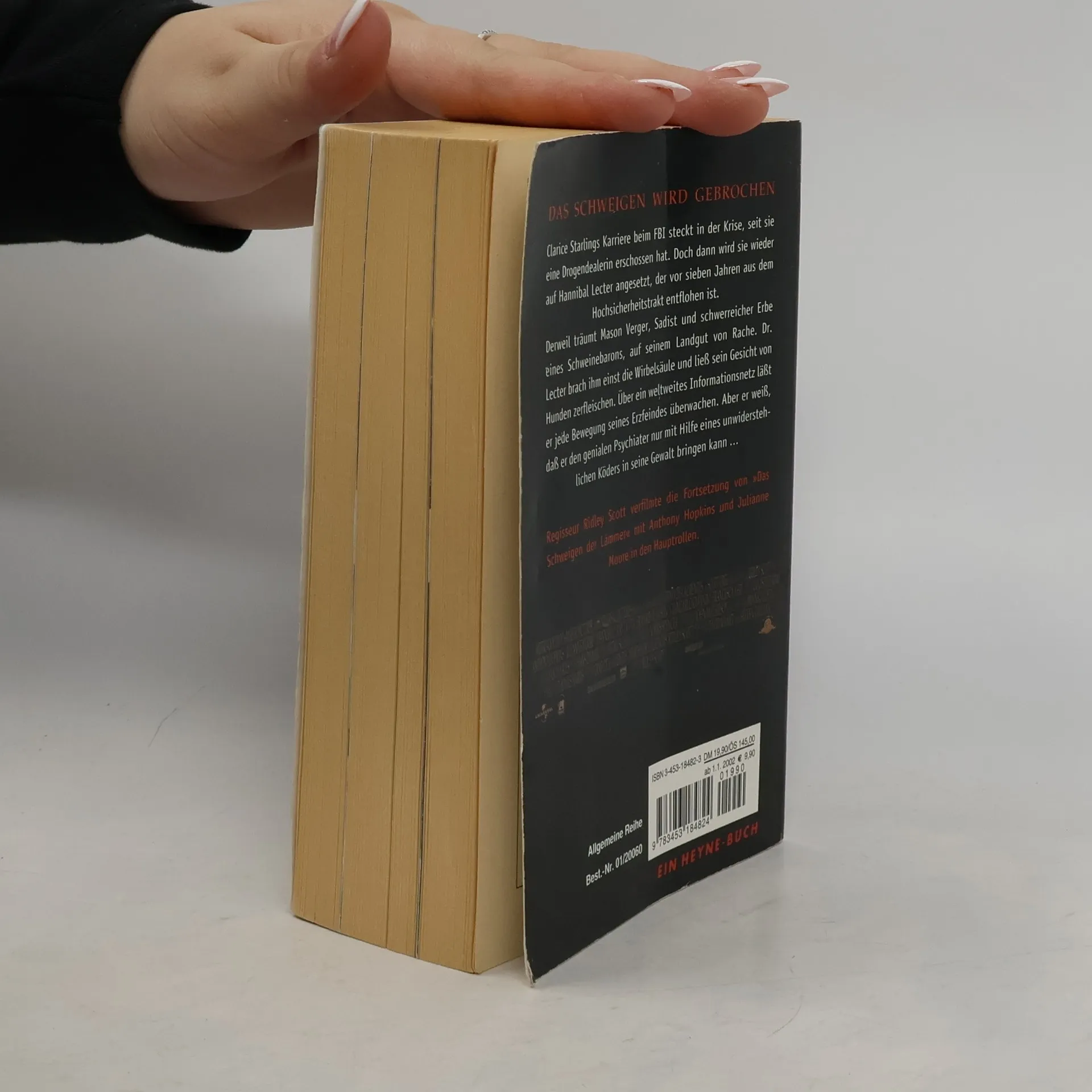 Das Schweigen wird gebrochen Clarice Starlings Karriere beim FBI steckt in der Krise, seit sie eine Drogendealerin erschossen hat. Doch dann wird sie wieder auf Hannibal Lecter angesetzt, der vor sieben Jahren aus dem Hochsicherheitstrakt entflohen ist. Derweil träumt Mason Verger, Sadist und schwerreicher Erbe eines Schweinebarons, auf seinem Landgut von Rache. Dr. Lecter brach ihm einst die Wirbelsäule und ließ sein Gesicht von Hunden zerfleischen. Über ein weltweites Informationsnetz läßt er jede Bewegung seines Erzfeindes überwachen. Aber wer weiß, dass er den genialen Psychiater nur mit Hilfe eines unwiderstehlichen Köders in seine Gewalt bringen kann...
