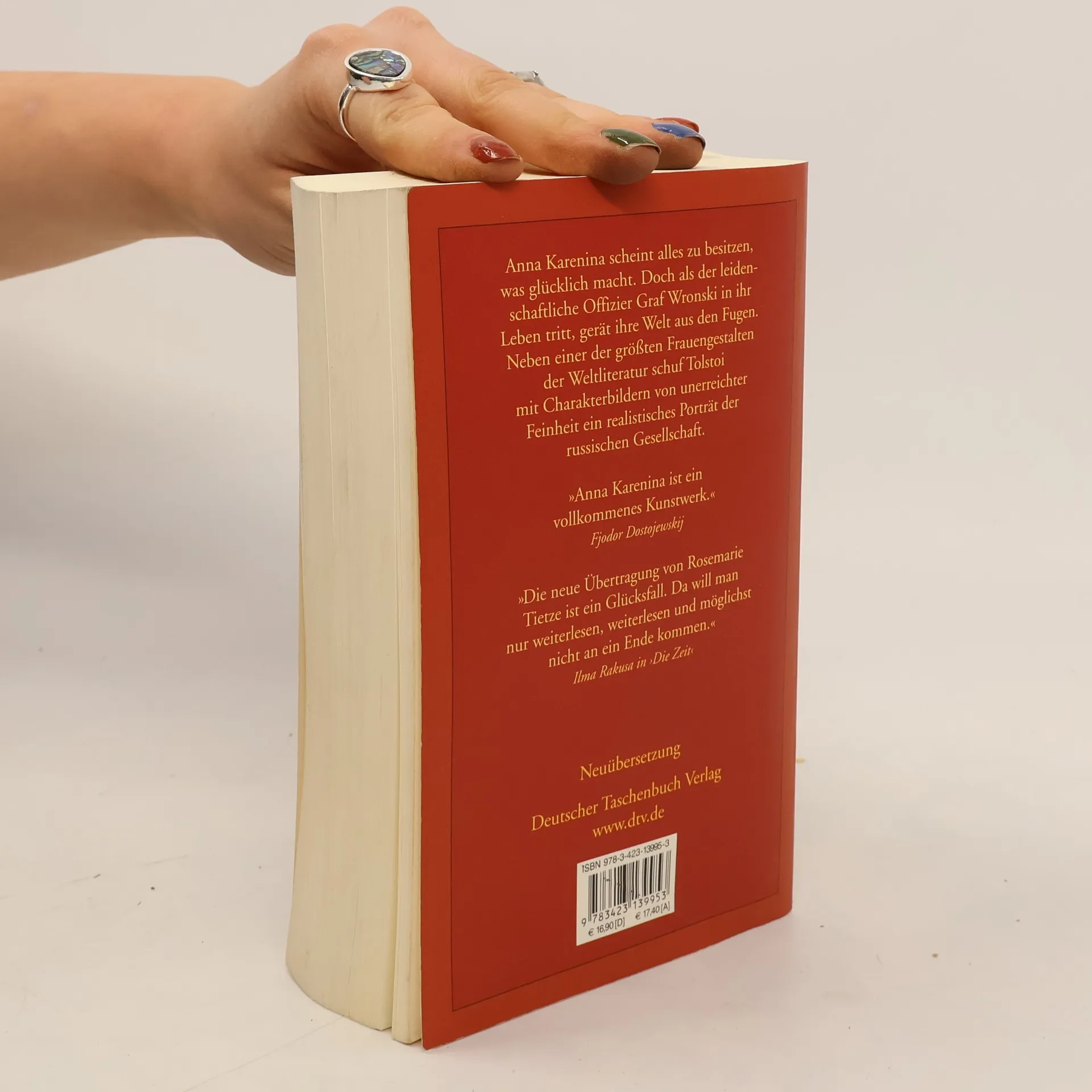 Tolstois Meisterwerk in Neuübersetzung – erstmals im Taschenbuch bei dtv Anna Karenina scheint alles zu besitzen, was glücklich macht. Doch als der leidenschaftliche Offizier Graf Wronskij in ihr Leben tritt, gerät ihre Welt aus den Fugen. Sie muss ihrer bedingungslosen Liebe folgen – bis zum bitteren Ende. Tolstois berühmtes Werk gilt als sein künstlerisch vollkommenstes, mit Charakterbildern von unerreichter Feinheit, zugleich ist es ein unerbittliches Porträt der russischen Gesellschaft. Rosemarie Tietzes hochgelobte Neuübersetzung setzt neue Maßstäbe und lässt das eindrucksvolle Werk in neuem Glanz erstrahlen. • Paul-Celan-Preis 2010 für Rosemarie Tietze • Mit umfangreichem Anhang zu Leben und Werk des Autors