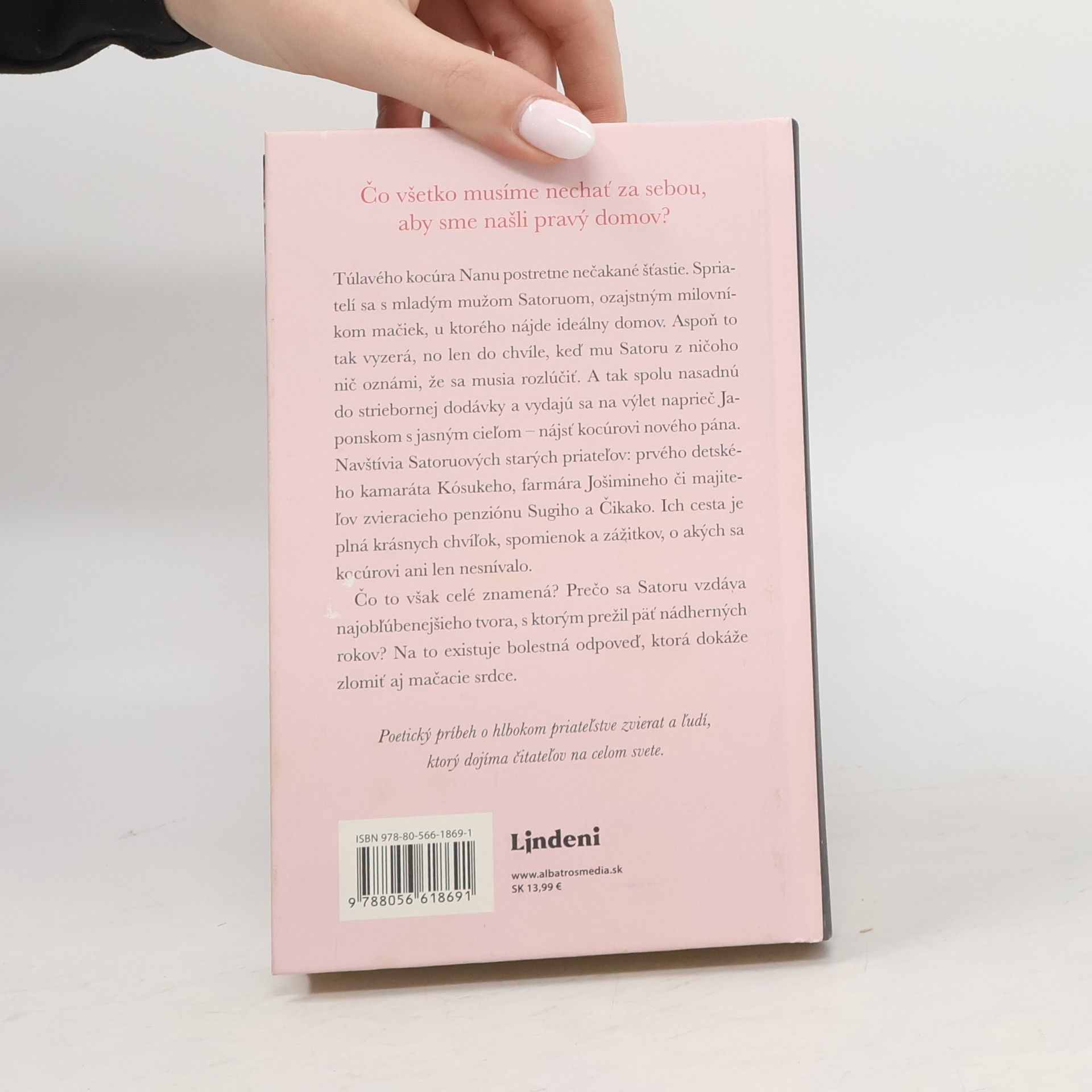 Niekedy musíme všetko opustiť, aby sme našli pravý domov... Túlavého kocúra Nanu jedného dňa postretne nečakané šťastie. Spriatelí sa s mladým mužom Satoruom, ozajstným milovníkom mačiek, u ktorého nájde ideálny domov. Aspoň to tak vyzerá, no len do chvíle, keď mu Satoru z ničoho nič oznámi, že sa musia rozlúčiť. A tak spolu nasadnú do striebornej dodávky a vydajú sa na výlet naprieč Japonskom s jasným cieľom – nájsť kocúrovi nového pána. Navštívia Satoruových starých priateľov: prvého detského kamaráta Kósukeho, farmára Jošimineho či majiteľov zvieracieho hotela Sugi a Čikako, kde sa Nana dokonca spriatelí so psom. Ich cesta je plná krásnych chvíľok, spomienok a zážitkov, o akých sa kocúrovi ani len nesnívalo. Čo to však celé znamená? Prečo sa Satoru vzdáva najobľúbenejšieho tvora, s ktorým prežil päť nádherných rokov? Na to existuje bolestná odpoveď, ktorá dokáže zlomiť aj mačacie srdce. Poetický príbeh o hlbokom priateľstve zvierat a ľudí, ktorý dojíma čitateľov na celom svete.