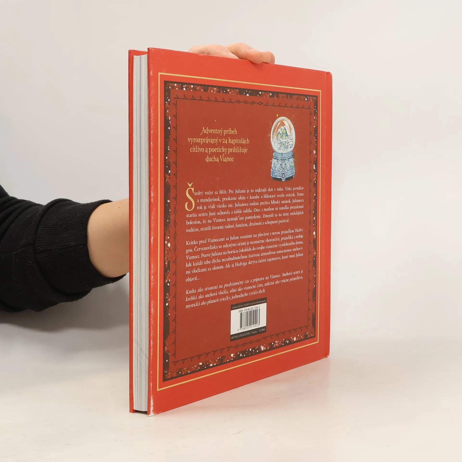 Štedrý večer sa blíži. Pre Juliana je to najkrajší deň v roku. Vôňa perníkov a mandarínok, praskanie ohňa v kozube a blikotavé svetlo sviečok. Tento rok je však všetko iné. Julianova rodina prežíva hlboký smútok. Julianova staršia sestra Juni ochorela a náhle odišla. Otec s matkou sú natoľko presiaknutí bolesťou, že na Vianoce nemajú ani pomyslenia. Zmenili sa na tiene niekdajších rodičov, stratili životnú radosť, fantáziu, družnosť a schopnosť počúvať. Krátko pred Vianocami sa Julian zoznámi na plavárni s novou priateľkou Hedvigou. Červenovláska so zelenými očami je nesmierne zhovorčivá, priateľská a miluje Vianoce. Pozve Juliana na horúcu čokoládu do svojho vianočne vyzdobeného domu, kde každá izba dýcha nezabudnuteľnou žiarivou atmosférou umocnenou snehovými vločkami za oknom. Ale aj Hedviga skrýva ťaživé tajomstvo, ktoré musí Julian objaviť...