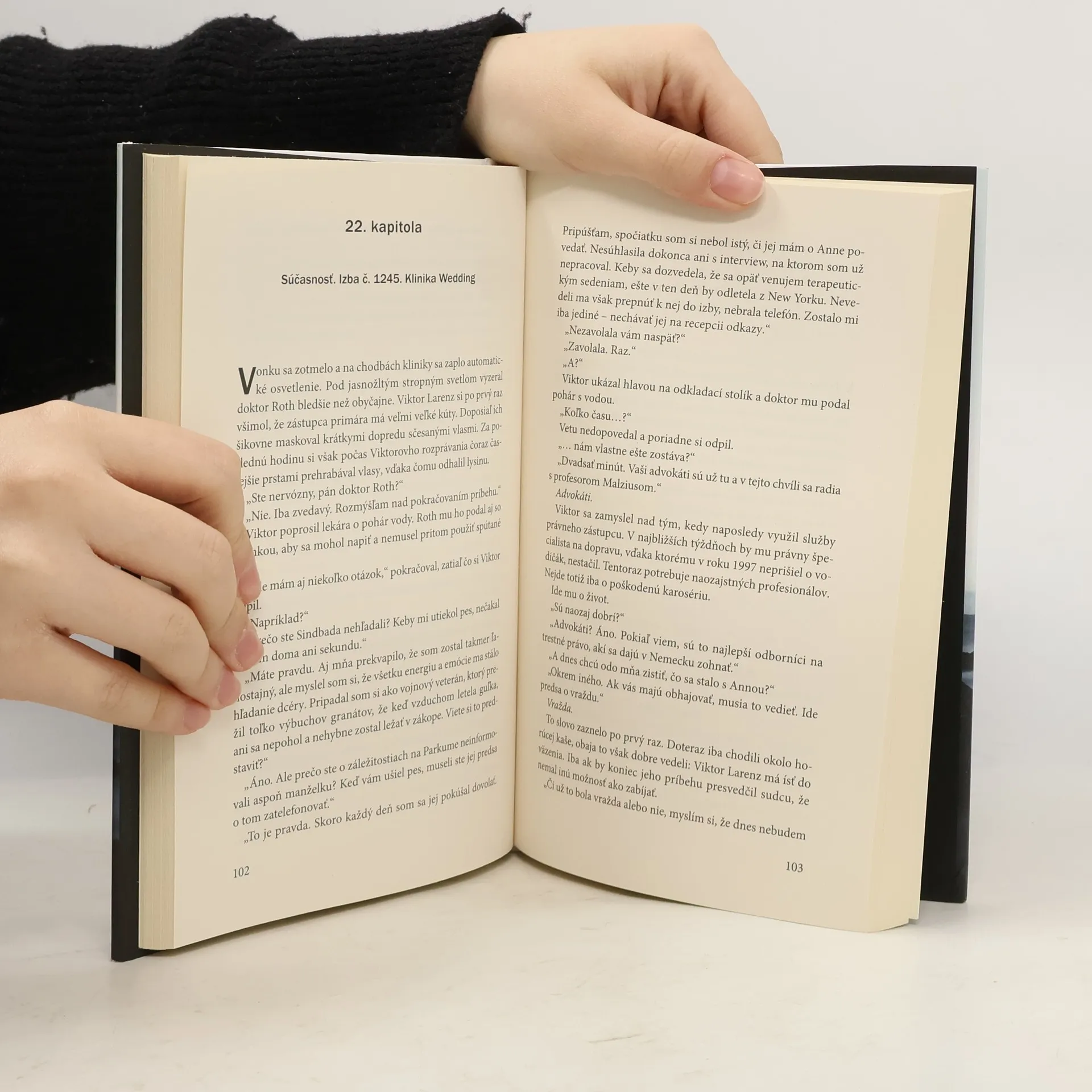 Dvanásťročná Josy, dcéra psychiatra Viktora Larenza, záhadne zmizne z ambulancie, zatiaľ čo jej otec čaká v čakárni. Lekár a sestrička tvrdia, že tam nikdy nevstúpila, a od tej doby nikto nevie, čo sa s ňou stalo. Viktor sa snaží vyrovnať s tragédiou. O štyri roky neskôr sa rozhodne poskytnúť interview renomovanému týždenníku a odchádza do osamoteného víkendového domu na ostrove Parkum, aby si premyslel odpovede. Tam ho navštívi záhadná mladá žena, ktorá sa predstaví ako spisovateľka a sťažuje sa na bludné predstavy. Neustále sa jej zjavuje malé dievčatko, ktoré zmizlo bez stopy, podobne ako Viktorova dcéra. Požaduje, aby ju liečil, pričom sa odvoláva na odporúčanie Viktorovho kolegu. Napriek počiatočným pochybnostiam, spôsobeným traumatizujúcou udalosťou, Viktor začne s terapiou, ktorá sa čoskoro mení na dramatický výsluch. Cez chaotické výpovede schizofreničky sa podarí prekročiť hranice medzi predstavou a realitou, pričom čitateľ postupne stráca schopnosť rozlíšiť, čo je skutočné a čo je len chorým výplodom. Tento psychotriler, plný hororových prvkov, sa stal debutom roka a ponúka nepredvídateľný, napínavý a majstrovsky vystavaný príbeh s prekvapujúcim rozuzlením.