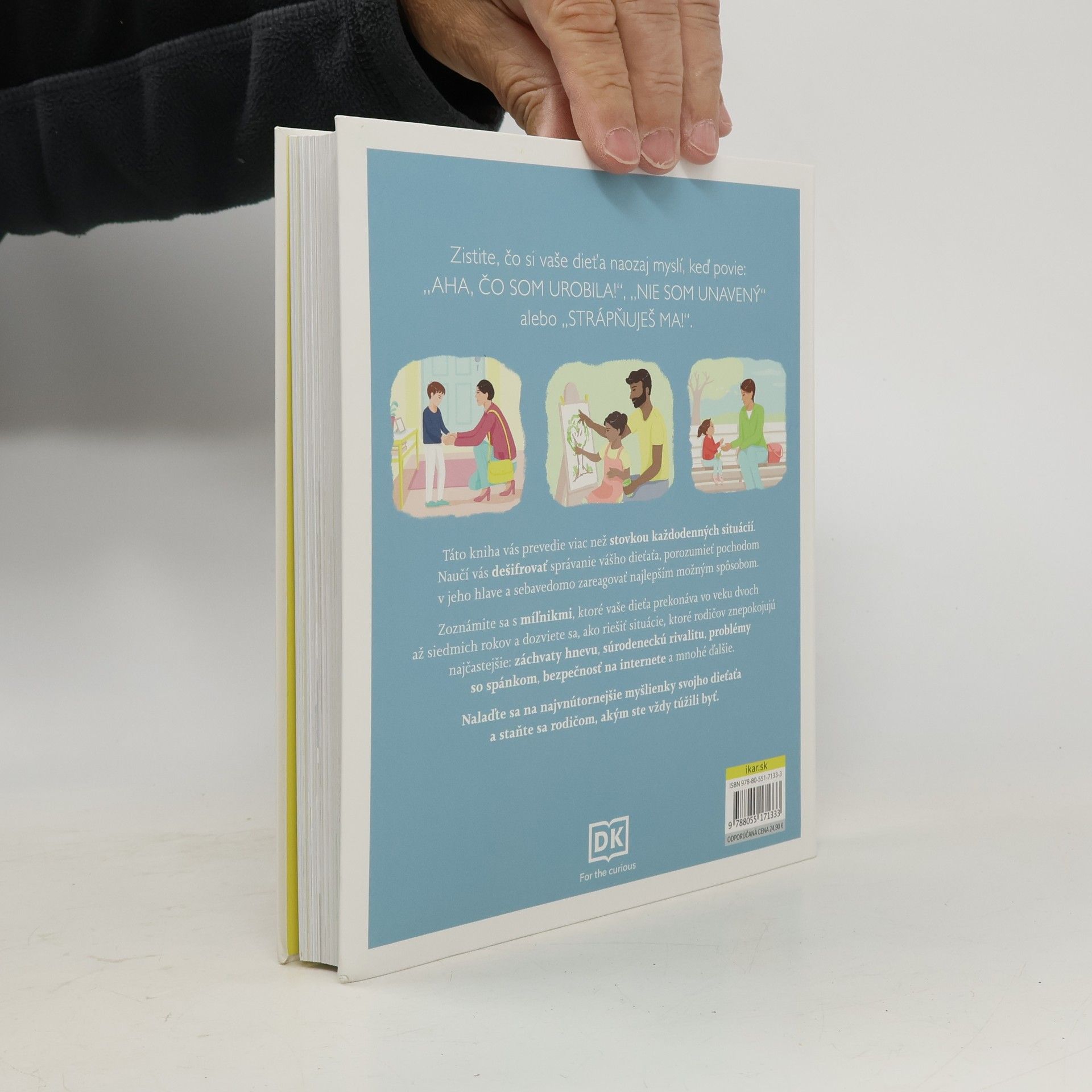 Zistite, čo si vaše dieťa naozaj myslí, keď povie: „Aha, čo som urobila!“, „Nie som unavený“ alebo „Strápňuješ ma!“. Táto kniha vás prevedie viac než stovkou každodenných situácií. Naučí vás dešifrovať správanie vášho dieťaťa, porozumieť pochodom v jeho hlave a sebavedomo zareagovať najlepším možným spôsobom. Zoznámite sa s míľnikmi, ktoré vaše dieťa prekonáva vo veku dvoch až siedmich rokov a dozviete sa, ako riešiť situácie, ktoré rodičov znepokojujú najčastejšie: záchvaty hnevu, súrodeneckú rivalitu, problémy so spánkom, bezpečnosť na internete a mnohé ďalšie. Nalaďte sa na najvnútornejšie myšlienky svojho dieťaťa a staňte sa rodičom, akým ste vždy túžili byť.