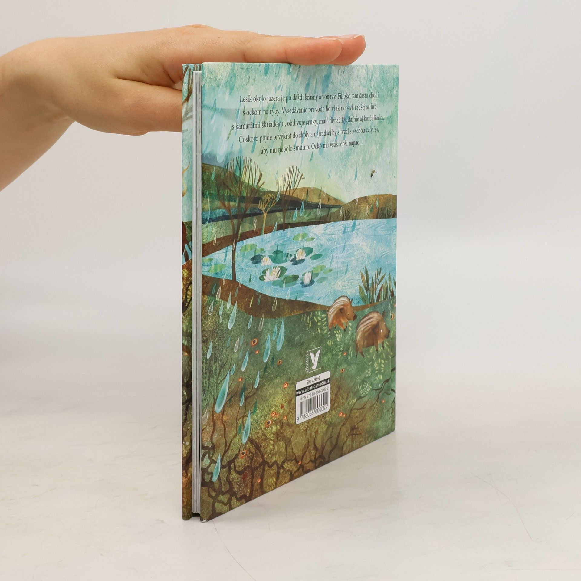 Lesík okolo jazera je po daždi krásny a voňavý. Filipko tam často chodí s ockom na ryby. Vysedávanie pri vode ho nebaví, radšej sa hrá s kamarátmi škriatkami, obdivuje srnky, malé diviačiky, dafnie aj korčuliarky. Čoskoro však pôjde prvýkrát do školy a najradšej by si vzal so sebou celý les, aby mu nebolo smutno. Je tam toľko zázračných vecí! Ocko má však lepší nápad...