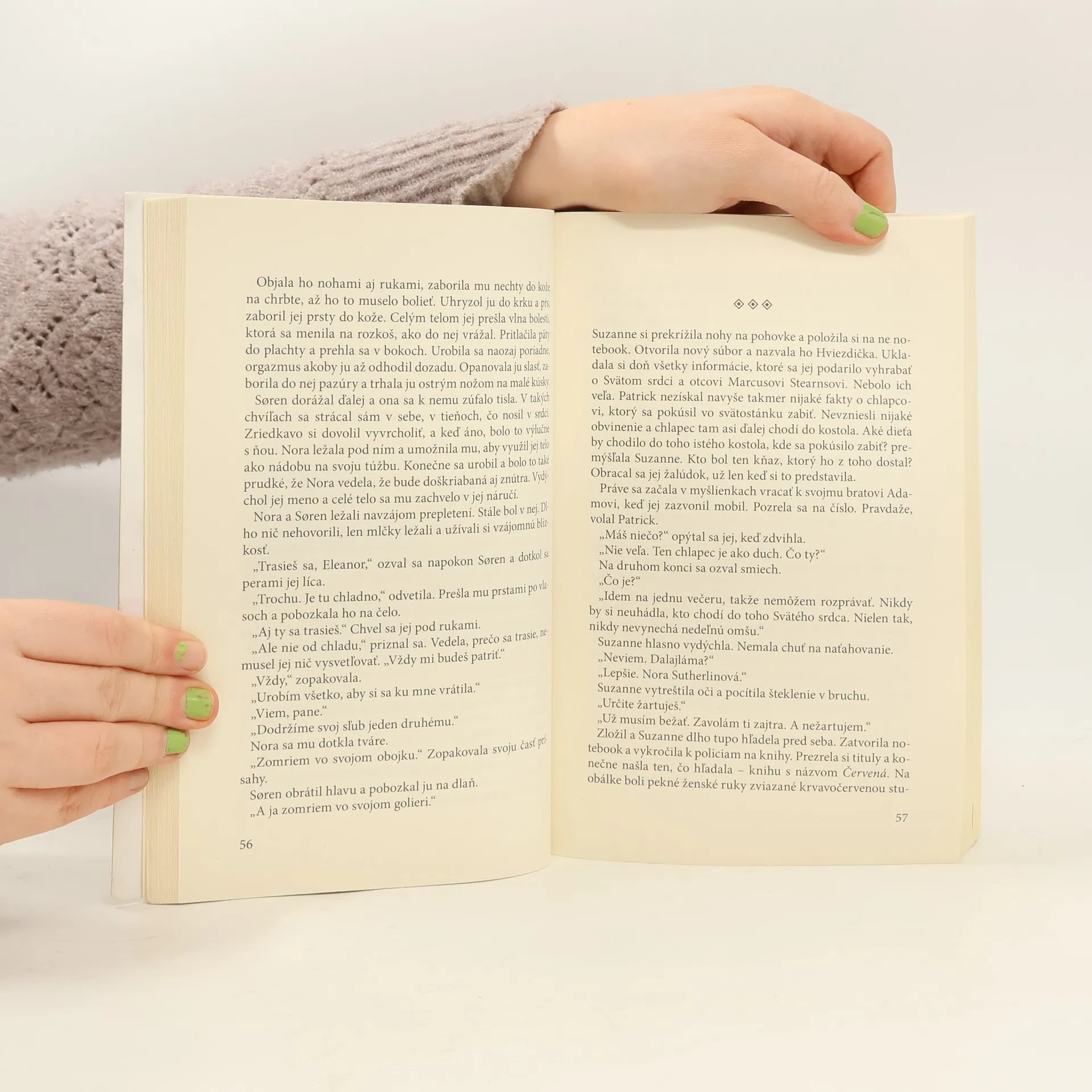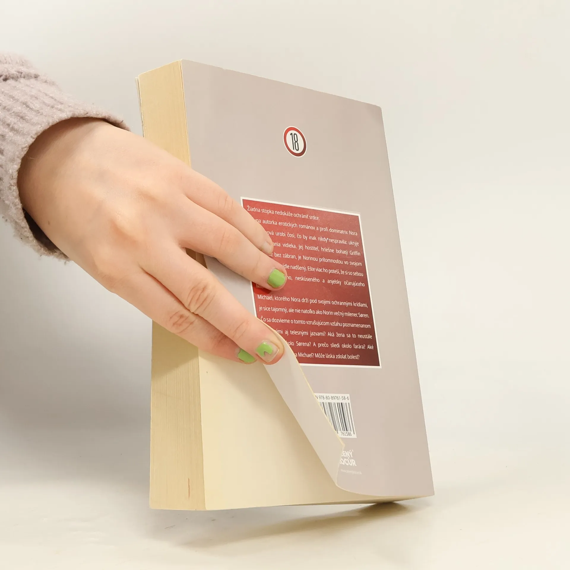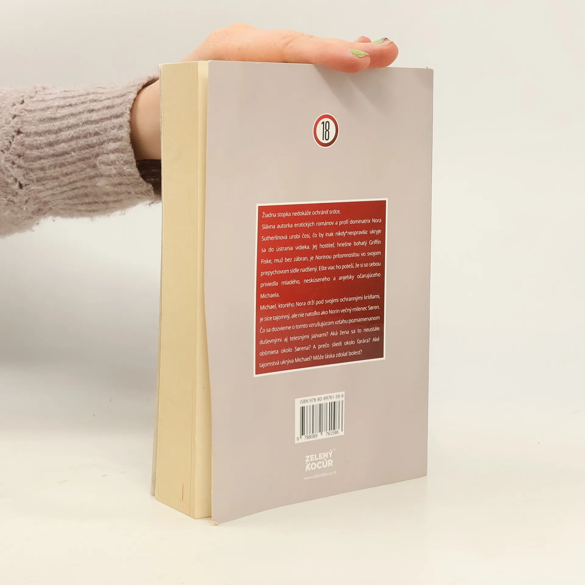 Žiadna stopka nedokáže ochrániť srdce. Slávna autorka erotických románov a profi dominatrix Nora Sutherlinová urobí čosi, čo by inak nikdy nespravila: ukryje sa do ústrania vidieka. Jej hostiteľ, hriešne bohatý Griffin Fiske, muž bez zábran, je Norinou prítomnosťou vo svojom prepychovom sídle nadšený. Ešte viac ho poteší, že si so sebou priviedla mladého, neskúseného a anjelsky očarujúceho Michaela. Michael, ktorého Nora drží pod svojimi ochrannými krídlami, je síce tajomný, ale nie natoľko ako Norin večný milenec Søren. Čo sa dozvieme o tomto vzrušujúcom vzťahu poznamenanom duševnými aj telesnými jazvami? Aká žena sa to neustále obšmieta okolo Sørena? A prečo sliedi okolo farára? Aké tajomstvá ukrýva Michael? Môže láska zdolať bolesť?