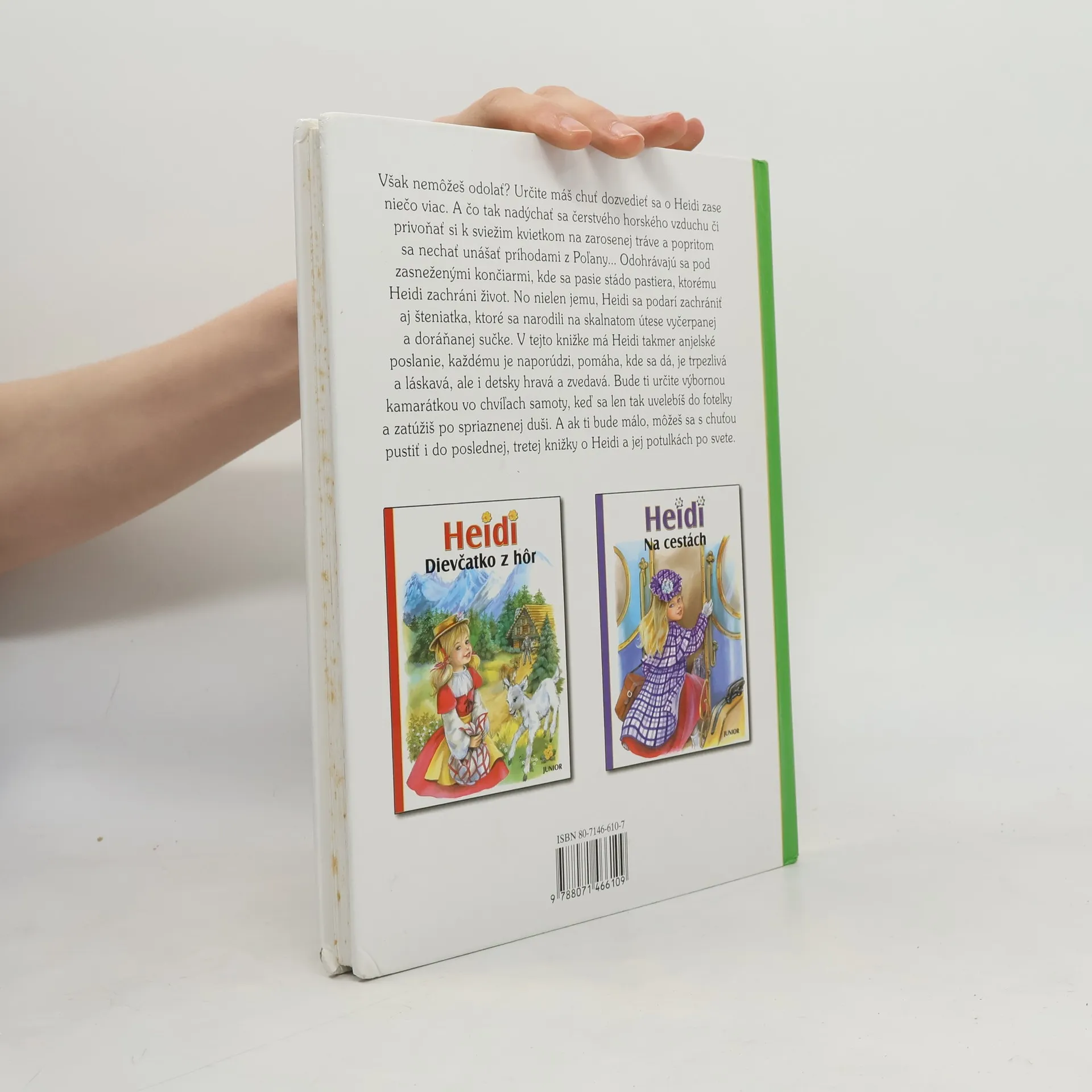 Určite máš chuť dozvedieť sa o Heidi opäť niečo viac. A čo tak nadýchať sa čerstvého horského vzduchu, či privoňať si k sviežim kvietkom na zarosenej tráve a popritom sa nechať unášať príhodami z Poľany... Odohrávajú sa pod zasneženými končiarmi, kde sa pasie stádo pastiera, ktorému Heidi zachráni život. No nielen jemu. Heidi sa podarí zachrániť aj šteniatka, ktoré sa narodili na skalnatom útese vyčerpanej a doráňanej sučke. V tejto knižke má Heidi takmer anjelské poslanie, každému je naporúdzi, pomáha, kde sa dá, je trpezlivá a láskavá, ale aj detsky hravá a zvedavá. Bude ti určite výbornou kamarátkou vo chvíľach samoty, keď sa len tak uvelebíš do kresla a zatúžiš po spriaznenej duši. A ak ti bude málo, môžeš sa s chuťou pustiť aj do poslednej, tretej knižky o Heidi a jej potulkách po svete.