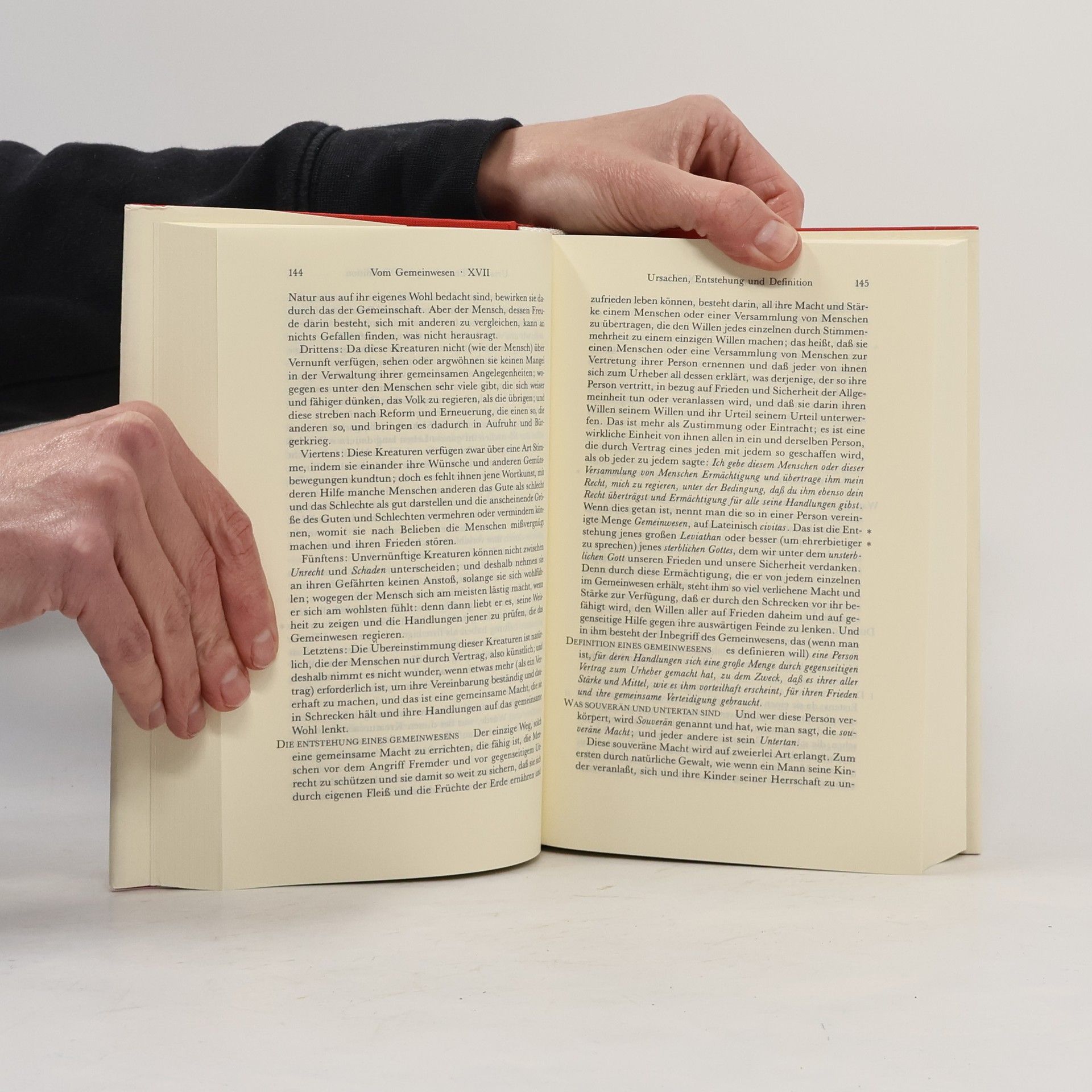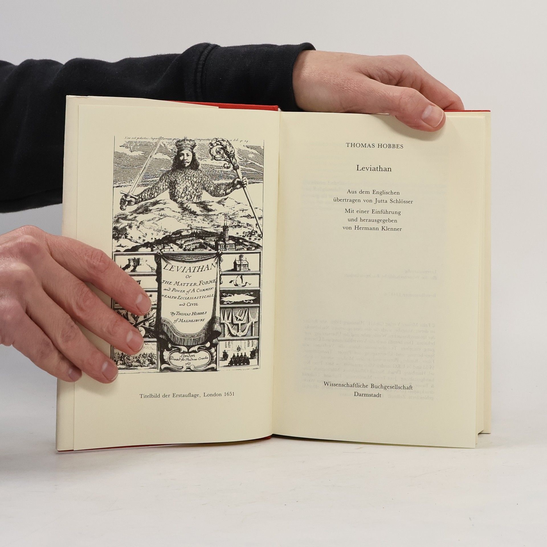 Hobbes’ 1651 erschienene Politiktheorie und Gesellschaftsutopie gilt als sein wichtigstes Werk. Dabei vertritt der Staatstheoretiker und Philosoph die Ansicht, dass der Mensch von Natur aus böse ist und staatlicher Kontrolle bedarf. Besondere Berühmtheit erlangte hierbei sein drastisches Bild des »Leviathan«, eines gewaltigen politischen (Staats-)Körpers, der die in den Gesellschaftsvertrag einwilligenden Staatsbürger sowie die friedenssichernde Obrigkeit in sich vereint. Die hier vorliegende Ausgabe beinhaltet die ersten beiden Teile »Vom Menschen« und »Vom Staat« in der neuen Übersetzung von Jacob Peter Mayer. Malte Diesselhorst geht in seinem Nachwort den historischen Hintergründen dieses Werks nach, das eine Antwort auf die chaotischen Zustände seiner Zeit war.