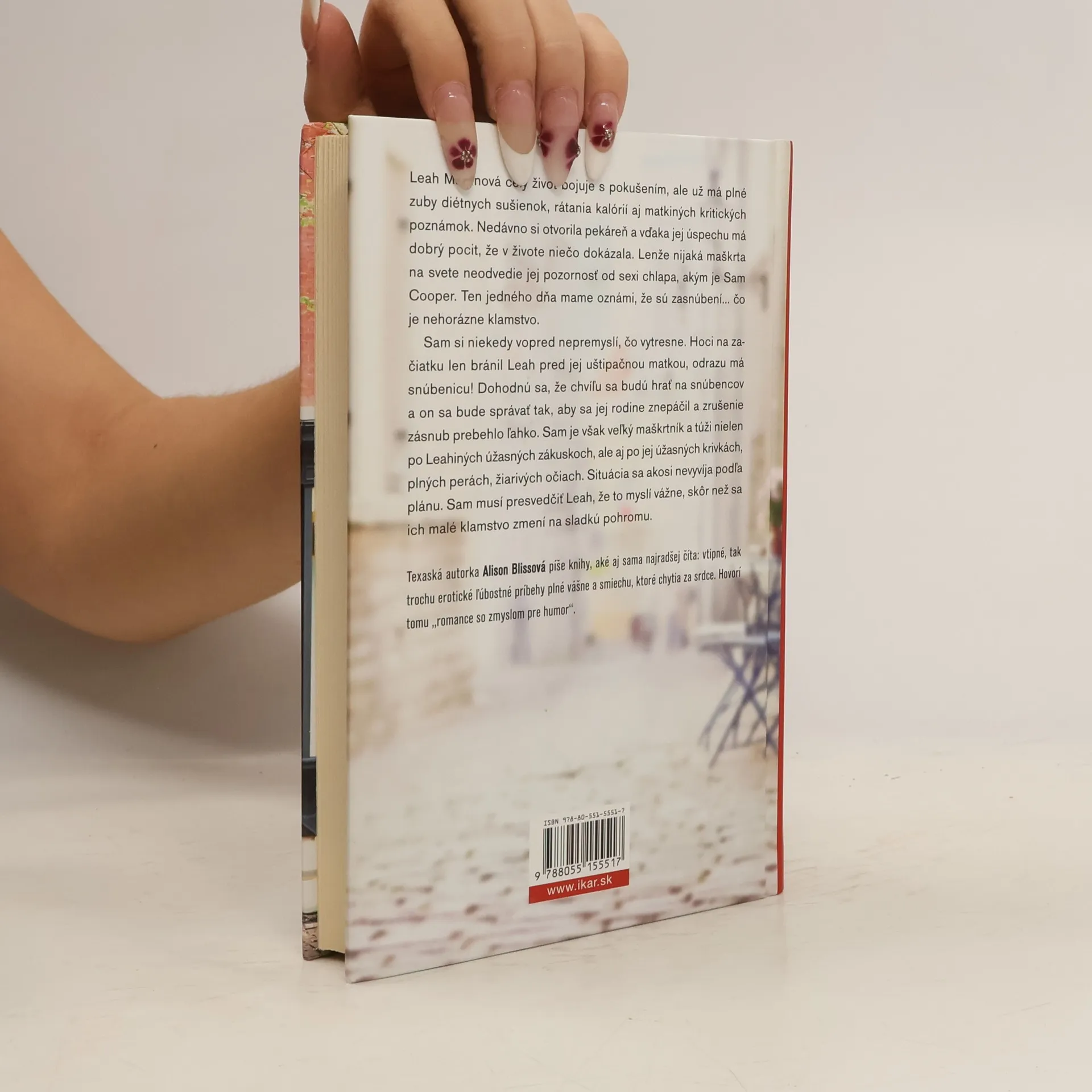 Leah Martinová celý život bojuje s pokušením, ale už má plné zuby diétnych sušienok, rátania kalórií a matkiných kritických poznámok. Nedávno si otvorila pekáreň a vďaka jej úspechu má dobrý pocit, že v živote niečo dokázala. Lenže nijaká maškrta na svete neodvedie jej pozornosť od sexi chlapa, akým je Sam Cooper. Ten jedného dňa mame oznámi, že sú zasnúbení… čo je nehorázne klamstvo. Sam si niekedy vopred nepremyslí, čo vytresne. Hoci na začiatku len bránil Leah pred jej uštipačnou matkou, odrazu má snúbenicu! Dohodnú sa, že chvíľu sa budú hrať na snúbencov a on sa bude správať tak, aby sa jej rodine znepáčil a zrušenie zásnub prebehlo ľahko. Sam je však veľký maškrtník a túži nielen po Leahiných úžasných zákuskoch, ale aj po jej úžasných krivkách, plných perách, žiarivých očiach. Situácia sa akosi nevyvíja podľa plánu. Sam musí presvedčiť Leah, že to myslí vážne, skôr než sa ich malé klamstvo zmení na sladkú pohromu.