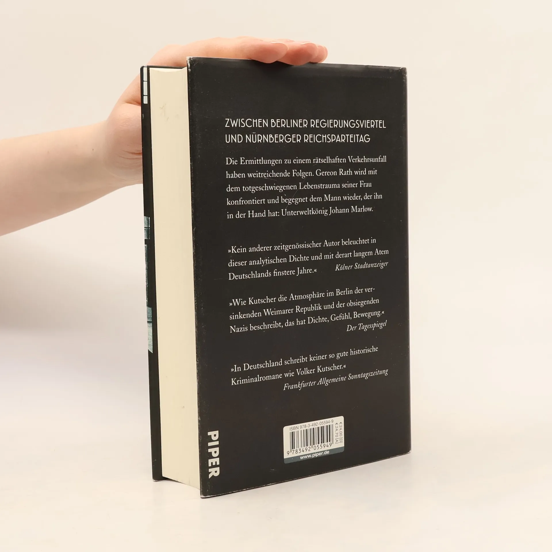 Berlin, Spätsommer 1935. In der Familie Rath geht jeder seiner Wege. Pflegesohn Fritz marschiert mit der HJ zum Nürnberger Reichsparteitag, Charly schlägt sich als Anwaltsgehilfin und Privatdetektivin durch, während sich Gereon Rath, mittlerweile zum Oberkommissar befördert, mit den Todesfällen befassen muss, die sonst niemand haben will.  Ein tödlicher Verkehrsunfall weckt seinen Jagdinstinkt, obwohl seine Vorgesetzten ihm den Fall entziehen und ihn in eine andere Abteilung versetzen. Es geht um Hermann Göring, der erpresst werden soll, um geheime Akten, Morphium und schmutzige Politik. Und um Charlys Lebenstrauma, den Tod ihres Vaters. Und um den Mann, mit dem Rath nie wieder etwas zu tun haben wollte: den Unterweltkönig Johann Marlow.