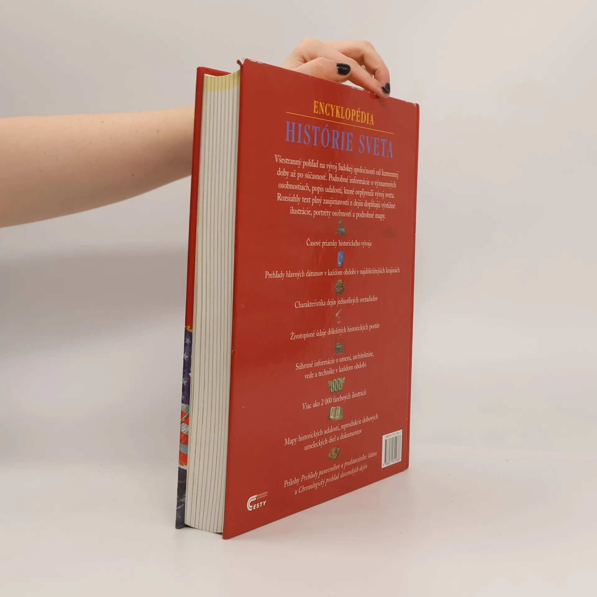 Všestranný pohľad na vývoj ľudskej spoločnosti od kamennej doby až po súčasnosť. Podrobné informácie o významných osobnostiach, popis udalostí, ktoré ovplyvnili vývoj sveta. Rozsiahly text plný zaujímavostí z dejín dopĺňajú výstižné ilustrácie, portréty osobností a podrobné mapy. * Časové priamky historického vývoja * Prehľady hlavných dátumov v každom období v najdôležitejších krajinách * Charakteristika dejín jednotlivých svetadielov * Životopisné údaje dôležitých historických postáv * Súhrnné informácie o umení, architektúre, vede a technike v každom období * Viac ako 2 000 farebných ilustrácií * Mapy historických udalostí, reprodukcie dobových umeleckých diel a dokumentov