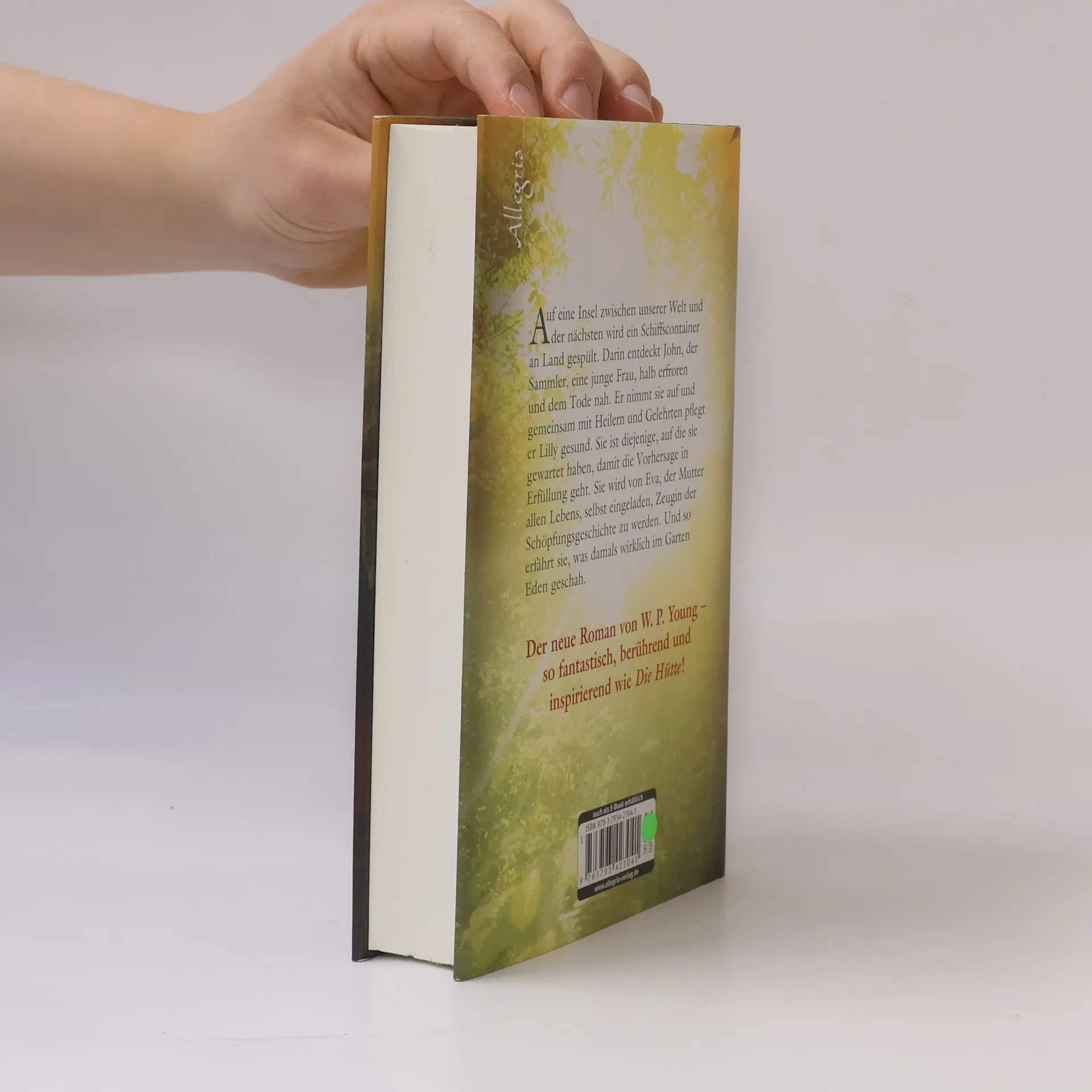 »Die Sprache ist atemberaubend schön und verführt zu einem völlig neuen Blick auf Gott und die Schöpfungsgeschichte.« PUBLISHERS WEEKLY Halb erfroren und dem Tode nahe strandet eine junge Frau auf einer geheimnisvollen Insel. Zu ihrem großen Glück wird sie von Gelehrten und Heilern gefunden, die bald erkennen, dass Lilly zu etwas ganz Besonderem berufen ist. Niemand Geringeres als Eva, die Mutter allen Lebens, lädt sie ein, Zeugin der Schöpfungsgeschichte zu werden und zu erfahren, was wirklich im Garten Eden geschah. Die dramatischen Ereignisse, die zur Vertreibung aus dem Paradies führen, bewegen Lilly zutiefst, und sie versteht, dass Gott sich von den Menschen niemals abgewandt hat. Ihre Aufgabe ist es nun, die Geschichte neu zu erzählen. William Paul Young hat bereits in Die Hütte zentrale spirituelle Fragestellungen neu beleuchtet und ein Millionenpublikum damit begeistert. In seinem neuen Roman zeigt er dem Leser eine ungewöhnliche und faszinierende Interpretation der ältesten Geschichte unserer Welt.