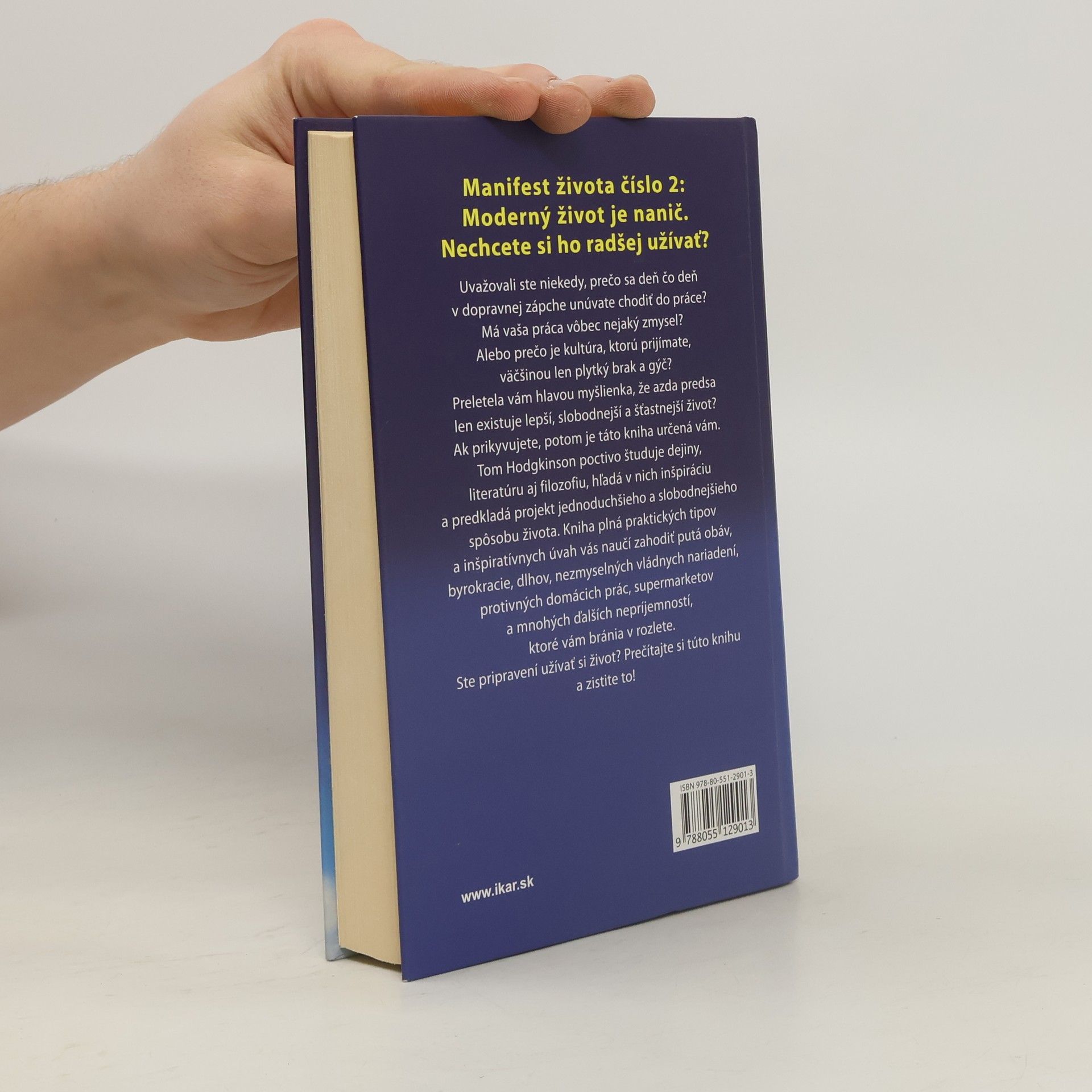 Uvažovali ste niekedy, prečo sa deň čo deň v dopravnej zápche unúvate chodiť do práce? Má vaša práca vôbec nejaký zmysel? Alebo prečo je kultúra, ktorú prijímate, väčšinou len plytký brak a gýč? Preletela vám hlavou myšlienka, že azda predsa len existuje lepší, slobodnejší a šťastnejší život? Ak prikyvujete, potom je táto kniha určená vám. Tom Hodgkinson poctivo študuje dejiny, literatúru aj filozofiu, hľadá v nich inšpiráciu a predkladá projekt jednoduchšieho a slobodnejšieho spôsobu života. Kniha plná praktických tipov a inšpiratívnych úvah vás naučí zahodiť putá obáv, byrokracie, dlhov, nezmyselných vládnych nariadení, protivných domácich prác, supermarketov a mnohých ďalších nepríjemností, ktoré vám bránia v rozlete. Ste pripravení užívať si život? Prečítajte si túto knihu a zistite to!