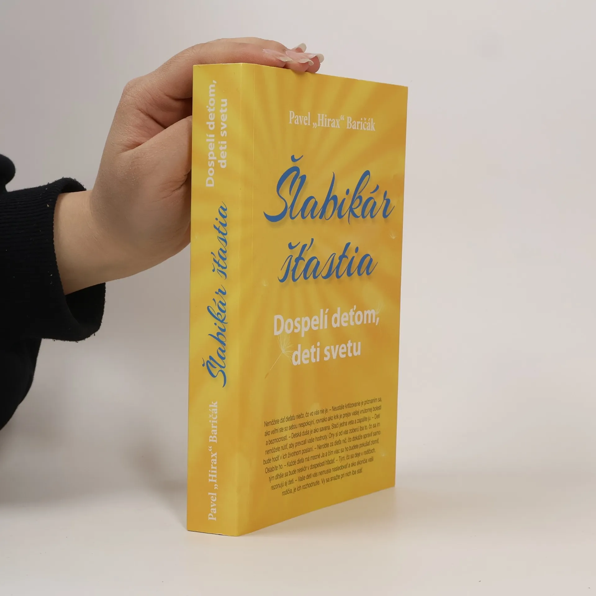 Tretí diel Šlabikára šťastia nie je určený iba pre rodičov, ktorí hľadajú spôsob, akou formou dať svojim potomkom to najlepšie, ale aj pre duše, ktoré chcú pochopiť, prečo sú v nich strachy, konajú ako konajú, či sa im v niečom nedarí. Kľúč k bôľom dneška sa totiž nachádza v detstve, v spôsobe, ako k nám bolo pristupované, čo sme videli, cítili a zažili od momentu splodenia až po dospievanie.