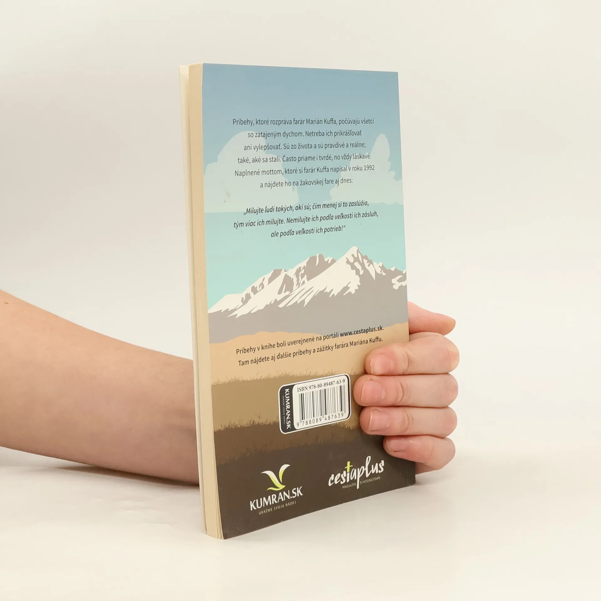alebo V nebi nájdeš prostitútky, vrahov aj zlodejov Príbehy, ktoré rozpráva farár Marián Kuffa, počúvajú všetci so zatajeným dychom. Netreba ich prikrášľovať ani vylepšovať. Sú zo života a sú pravdivé a reálne; také, aké sa stali. Často priame i tvrdé, no vždy láskavé. Naplnené mottom, ktoré si farár Kuffa napísal v roku 1992 a nájdete ho na žakovskej fare aj dnes: „Milujte ľudí takých, akí sú; čím menej si to zaslúžia, tým viac ich milujte. Nemilujte ich podľa veľkosti ich zásluh, ale podľa veľkosti ich potrieb!“