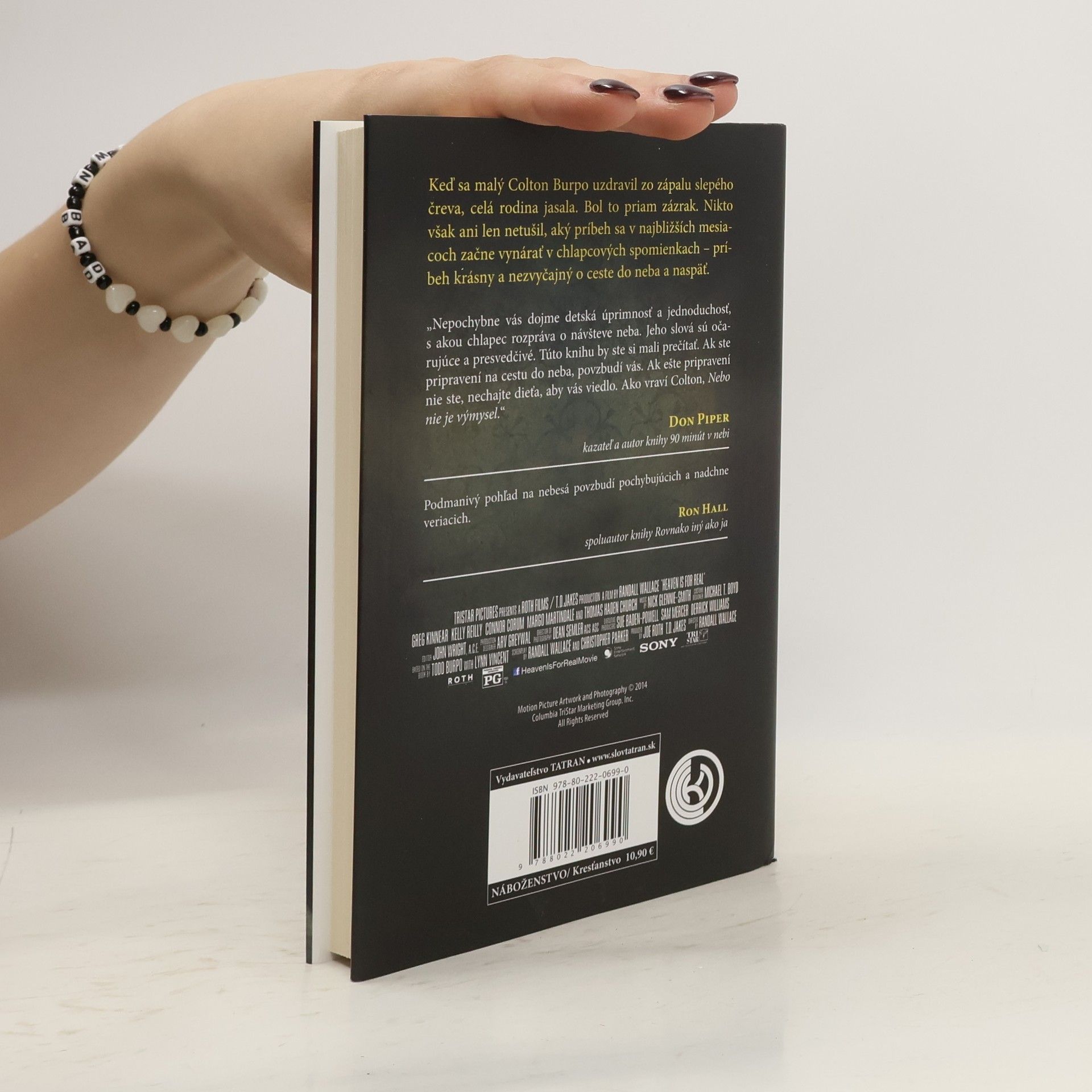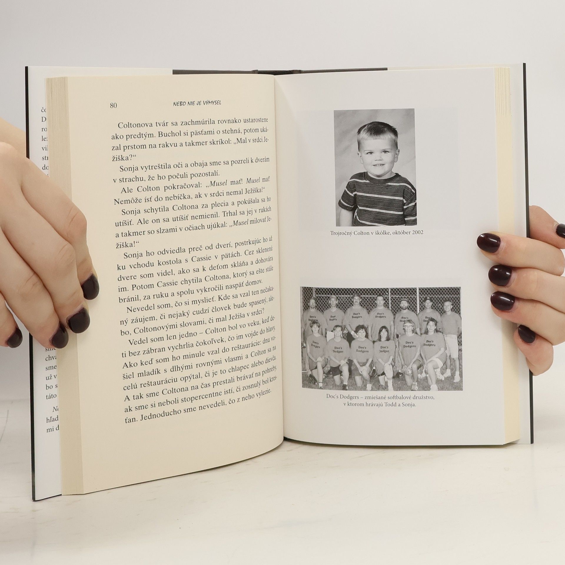 Skutočný príbeh malého Coltona sa stal inšpiráciou aj pre film. Trojročný chlapec vyrozprával rodičom, ako počas operácie opustil svoje telo a presne opísal, čo robili v nemocnici, kým on ležal na operačnom stole. Opísal svoju návštevu neba a zopakoval slová ľudí, ktorých nikdy predtým nevidel, vrátane udalostí z minulosti. Colton ohromil rodičov podrobnými opismi nebeského sveta, ktoré zodpovedali biblickým textom, hoci nevedel čítať. S detskou naivnosťou a úprimnosťou hovorí o stretnutí s dávno zosnulými rodinnými príslušníkmi, Ježišovi a anjeloch. Tvrdí, aký „veľký“ je Boh a ako nás miluje. Kniha, vyrozprávaná Coltonovými slovami, poodhaľuje svet po smrti, kde „nikto nie je starý a nenosí okuliare“. Učí nás milovať Boha a menej sa báť smrti, pričom ukazuje, že v nebi nezačneme len spievať, ale žiť tak, ako sme mali žiť pred prvým hriechom. Bez ohľadu na to, aké pocity vo vás posmrtný život vyvoláva, táto kniha vám o ňom prezradí mnohé. Navždy zmení váš pohľad na večnosť a naučí vás dívať sa na svet očami a srdcom dieťaťa.