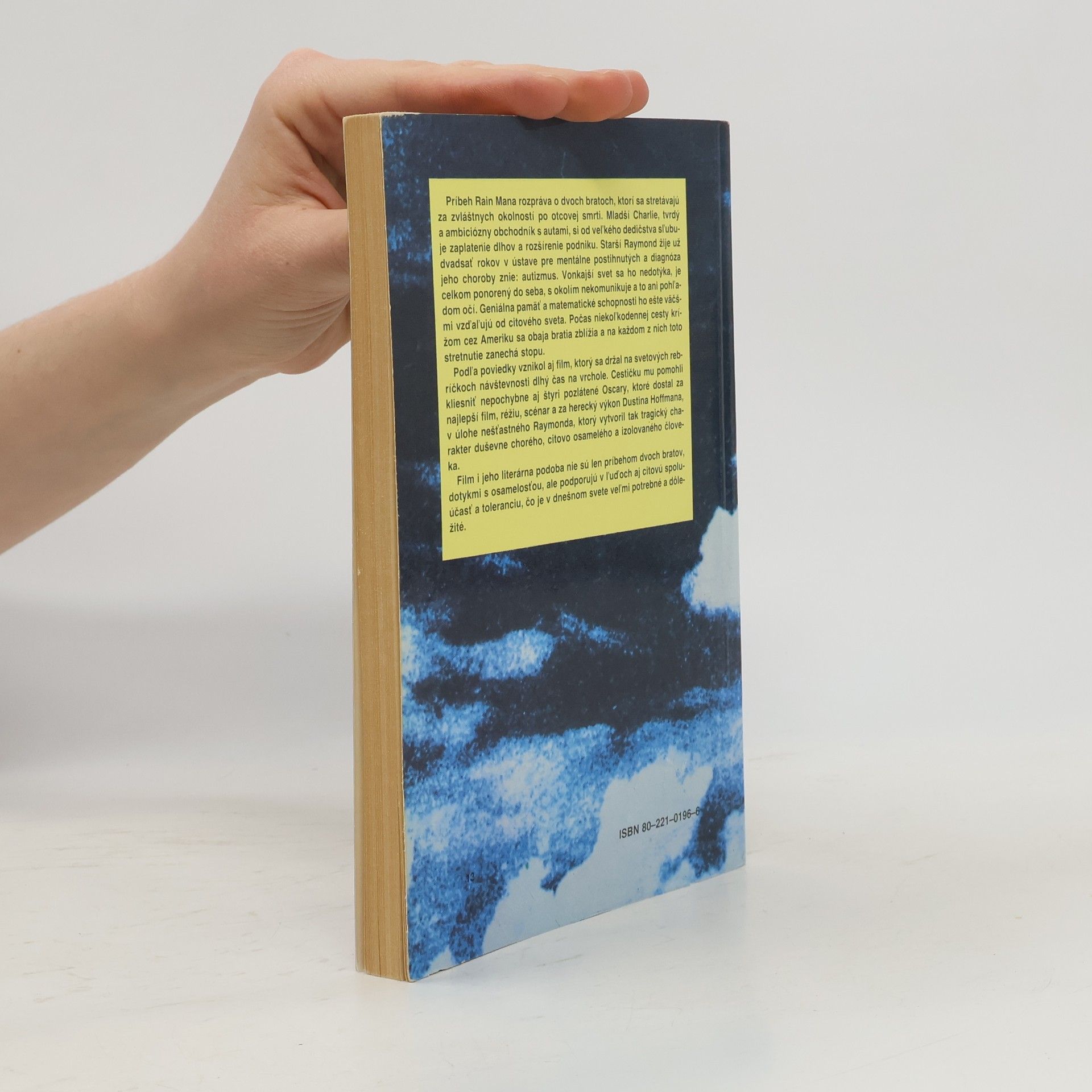 Slávny román, ktorý bol aj úspešne sfilmovaný. Príbeh o dvoch bratoch, ktorí sa stretávajú za zvláštnych okolností po otcovej smrti. Mladší je tvrdým obchodníkom, starší žije už 20 rokov v ústave pre mentálne postihnutých, diagnóza : autizmus...