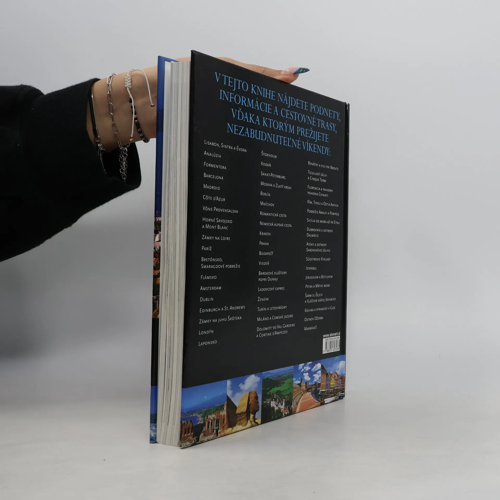 Sprievodca 52 víkendmi (jeden cieľ na každý víkend v roku) vás pozýva objavovať mestá, turistické trasy, pobrežia, ostrovy a krajiny v Európe a stráviť na týchto miestach vzrušujúci víkend. Predstavíme vám okrem iného talianske mestá ako Rím, Benátky, Florencia a Miláno. Nechýbajú však ani ďalšie európske metropoly. Za všetky spomeňme napríklad Paríž, Londýn či Berlín. Sú nezvyčajné, fascinujúce a nádherné. Nesmierne príťažlivé sú aj klasické destinácie, akými sú pobrežie pri talianskom Amalfi, zámky v Škótsku, Romantická cesta v Nemecku a Andalúzii. Nesmieme zabudnúť ani na trasu po barokových kláštoroch popri Dunaji, či naprieč laponským večným snehom a ľadom. Mapky miest a informácie o otváracích časoch pamiatok a múzeí uľahčujú a sprehľadňujú pobyt na týchto čarovných miestach.