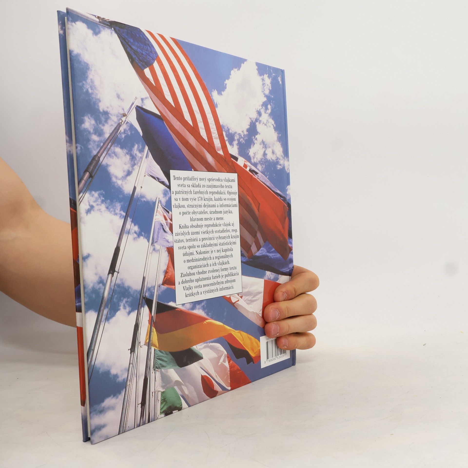 Encyklopédia vlajok zemí sveta, napísaná jasne a zrozumiteľne. Autorka sa v nej zaoberá 170 krajinami, pričom pri každej z nich nájdete okrem vlajky aj stručné údaje o dejinách krajiny, jej geografii, obyvateľoch, mestách, úradných jazykoch i mene. Kniha obsahuje reprodukcie vlajok aj závislých území všetkých svetadielov, resp. štátov, teritórií a provincií vybraných krajín sveta. V závere knihy nájdete aj kapitolu venovanú medzinárodným a regionálnym organizáciám a ich vlajkám.