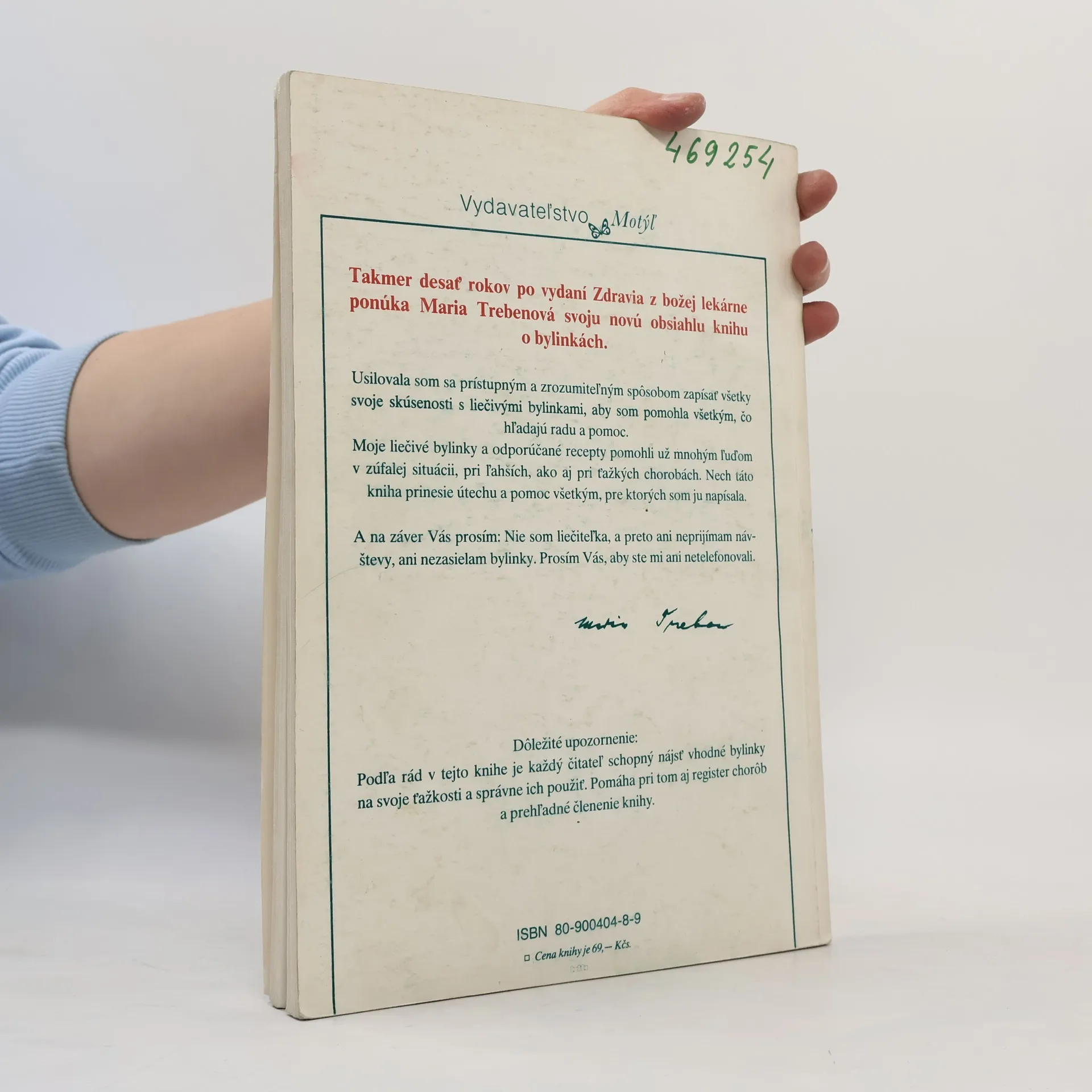 Obsáhlé, mimořádně cenné a systematické receptářové dílo je v kontextu knih legendární rakouské bylinářky doslova stěžejní. Sama autorka o něm řekla velmi stručně: „Všechno co vím, stojí v této knize. Snažila jsem se snadno pochopitelným a srozumitelným způsobem zapsat všechny zkušenosti svého života s léčivými bylinami, abych pomohla pokud možno všem, kdo hledají radu a pomoc. Moje léčivé byliny a recepty pomohly mnoha lidem v mnoha životních situacích, při lehkých obtížích stejně jako při těžkých onemocněních."