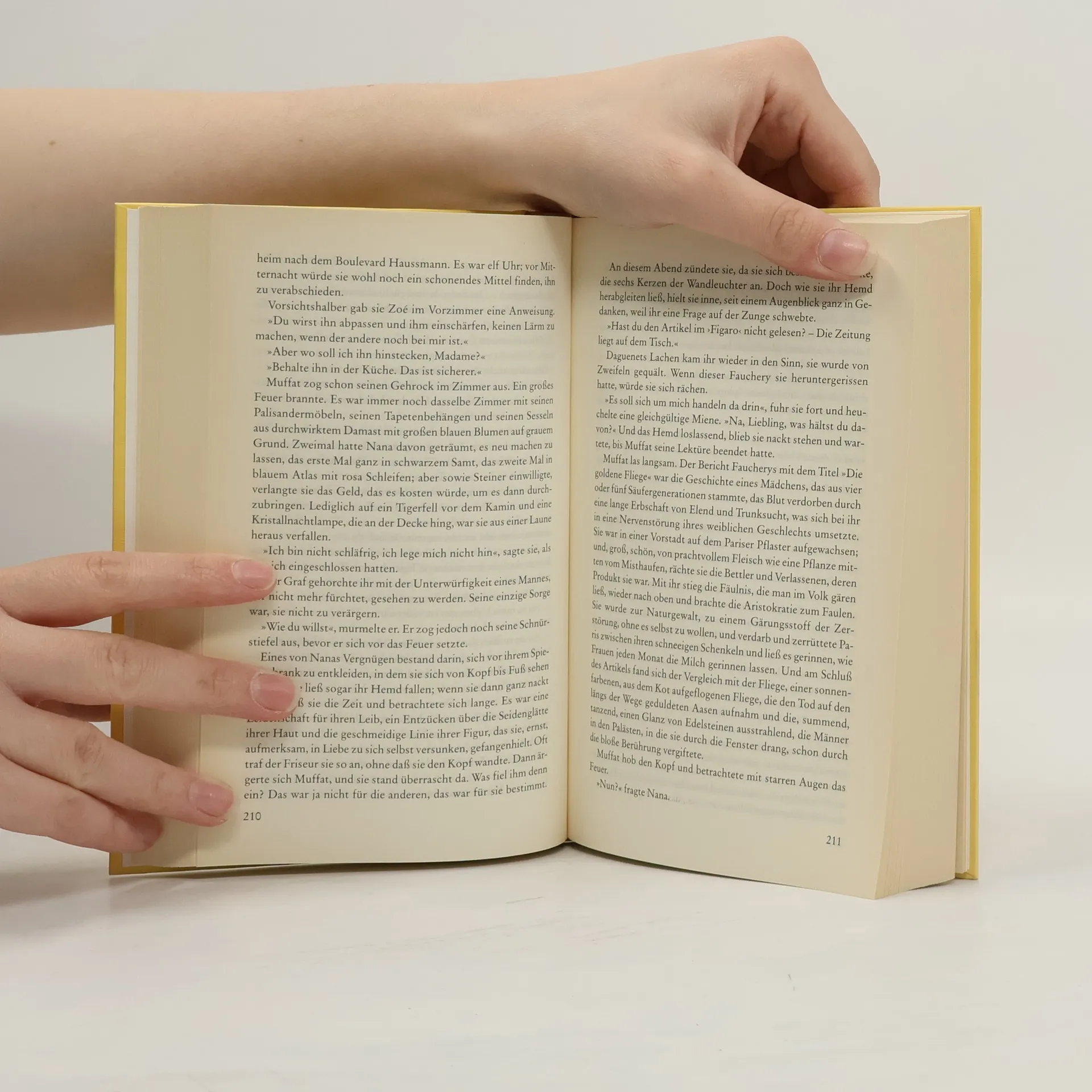 'Ich habe gestern den ganzen Tag bis halb 11 Uhr nachts damit zugebracht, ›Nana‹ zu lesen und ich habe die ganze Nacht darüber nicht schlafen können. Es wimmelt nur so von echten Ausdrücken, und zum Schluß der Tod ist ganz Michelangelo! Ein enormes Buch, mein Lieber!' Gustave Flaubert an Emile Zola Die unsterbliche Nana ist die Grande Cocotte, die sich, intrigant und triebhaft, einen Platz in der Gesellschaft erobert und alle ruiniert, die ihr verfallen und ihr Herz und Vermögen zu Füßen legen. Sie ist die 'goldene Fliege, die aus dem Kot auffliegt und vergiftet, was sie berührt'. Mit ihrer Hemmungslosigkeit und ihrem Leichtsinn setzt sie jedoch das Erreichte aufs Spiel und stirbt einsam in Paris. Flaubert schrieb an den Verleger Charpentier: 'Welche Lektüre! Wirklich ein tolles Buch! Zola ist ein Mann von Genie!'