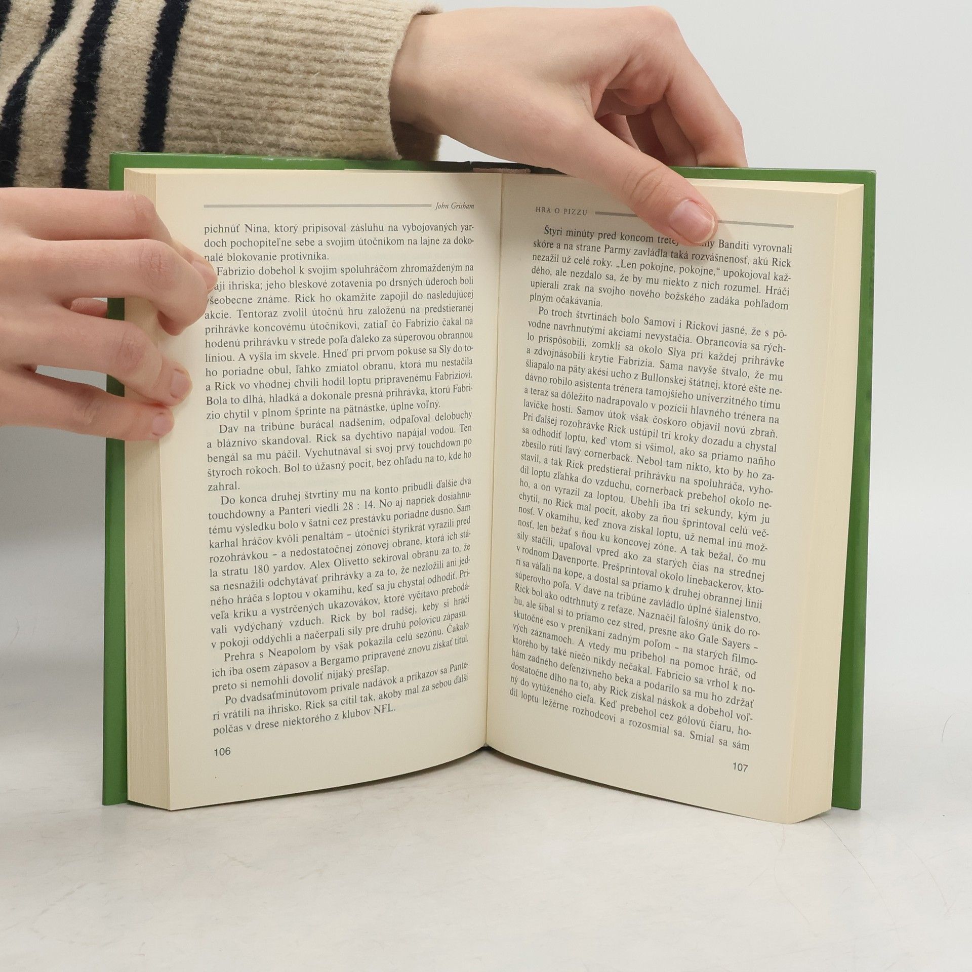 Slovensky. V další ze svých kraších próz situovaných mimo právnické prostředí nás John Grisham po Trenérovi opět zavádí do zákulisí svého oblíbeného sportu – amerického fotbalu. Rick Dockery, druhý záložní quarterback Cleveland Browns, zaviní prohru svého týmu v zápasu o titul mistra americké ligy a je okamžitě propuštěn. Jeho agent marně pátrá po týmu, který by byl po tomto fiasku ochoten Ricka angažovat. Nakonec uspěje, ale má to háček – zájemce se ozval z Evropy, konkrétně z italské Parmy. Rick, Američan zvyklý na velká auta, golfová hřiště a floridské podnebí, se tak ocitá poprvé na starém kontinentu, v zemi pyšnící se historií, krásnými ženami a vynikajícím jídlem, v týmu parmských Panterů, amatérů odhodlaných porazit odvěkého rivala – bergamské Lions – a vybojovat se svou novou hvězdou poprvé titul domácího šampiona. Svižný a humorným stylem podaný příběh nepochybně potěší jak Grishamovy fanoušky, tak příznivce amerického fotbalu a v neposlední řadě milovníky Itálie se vším, co k ní patří.