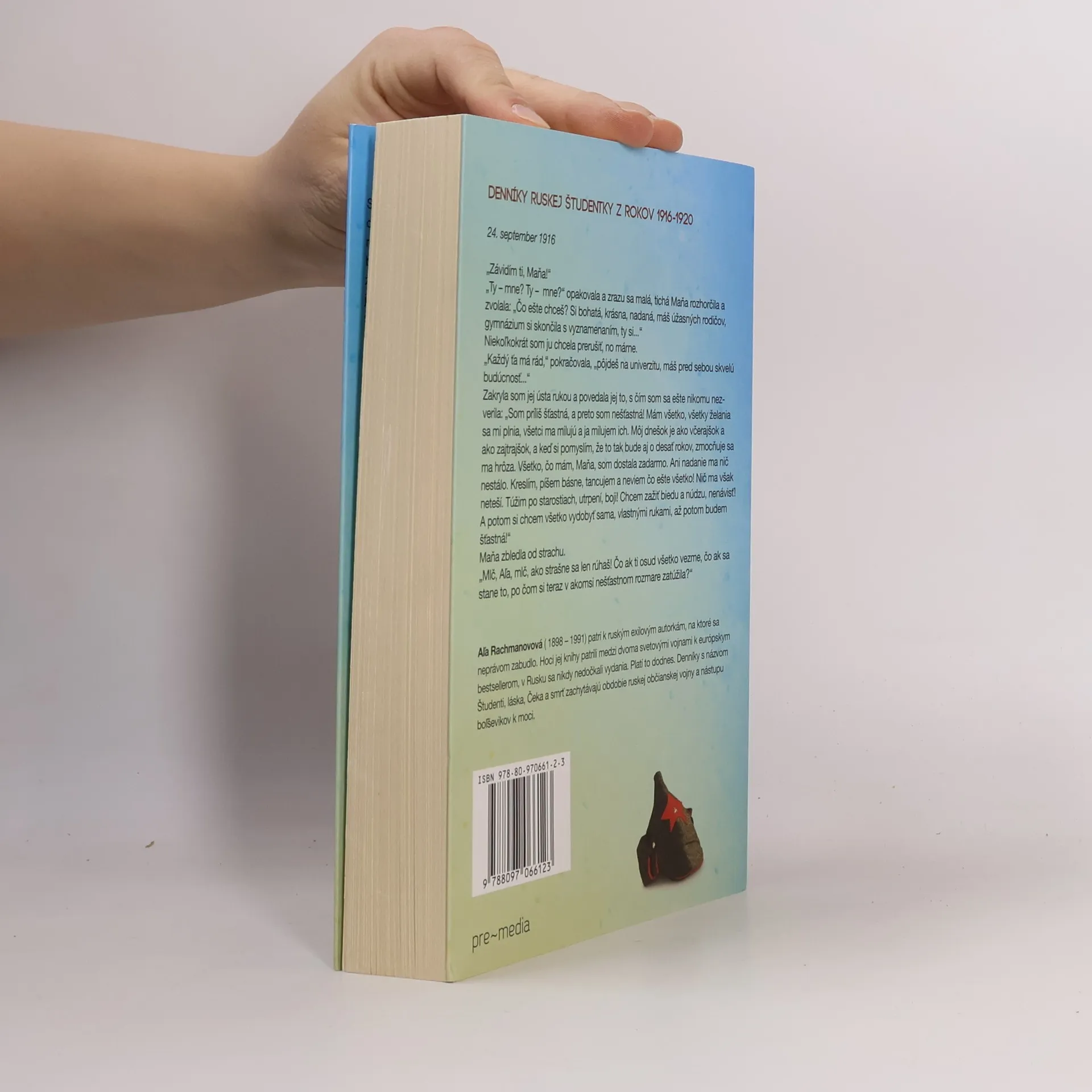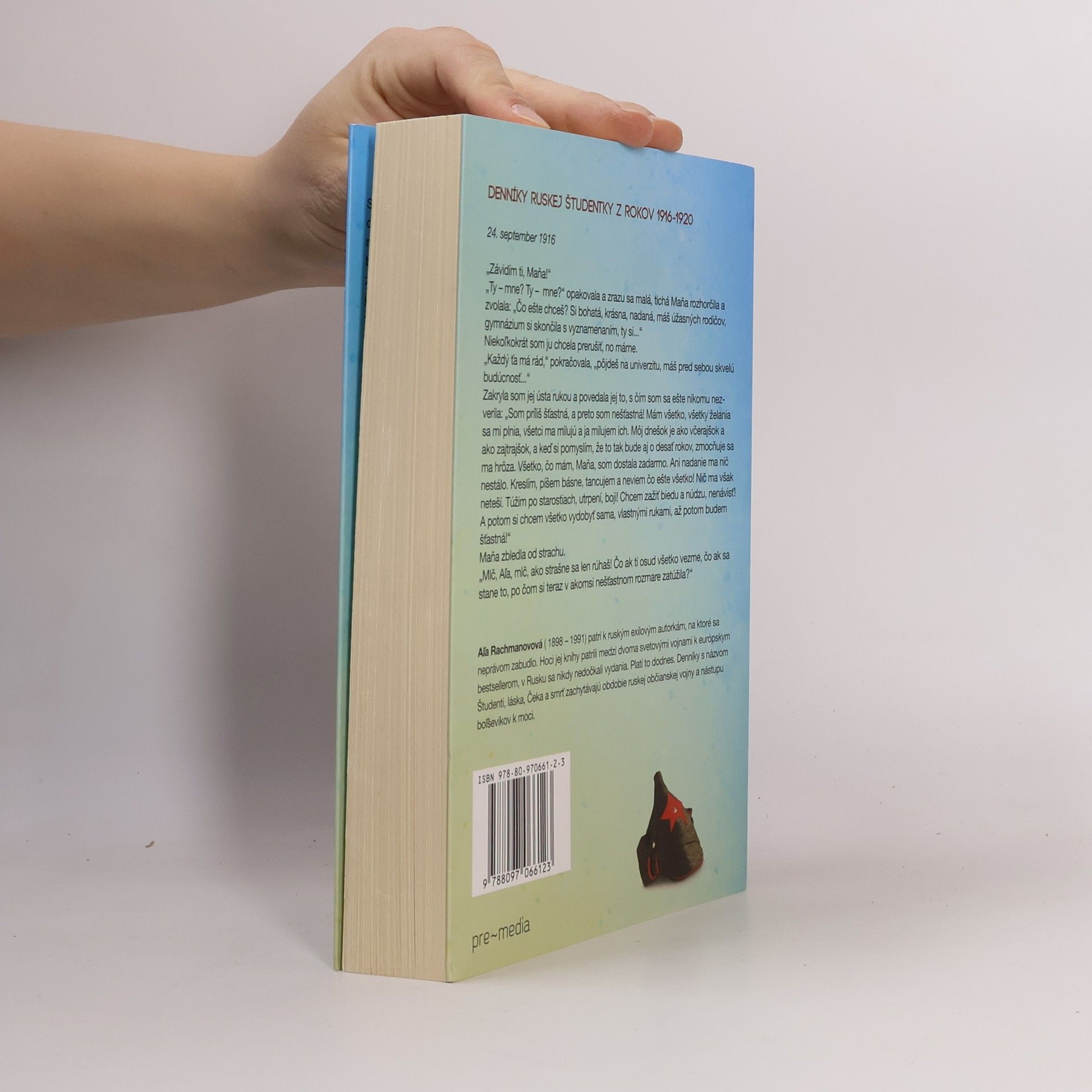 Denníky ruskej študentky z rokov 1916 - 1920. Sedemnásťročná dcéra lekára vyrastá obklopená láskou a bohatstvom svojej rodiny. V predvečer občianskej vojny a boľševického prevratu si začína písať denník, ktorý sa neskôr stane jedným z najdojímavejších a najautentickejších svedectiev červeného teroru. Neohrabané a tak trochu hrboľaté zápisky z prvých stránok postupne dozrievajú, podobne ako mladá študentka. Na konci sa stretávame so statočnou mladou ženou, ktorá na sibírskej železničnej staničke odovzdáva svoje zápisníky do rúk rakúskeho vojnového zajatca vracajúceho sa do vlasti. Zachytila v nich domové prehliadky, popravy, morálny chaos, vraždu cárskej rodiny, exodus ruskej inteligencie, lesk a morálnu biedu československých légií, ale aj svoje prvé lásky a sklamania.