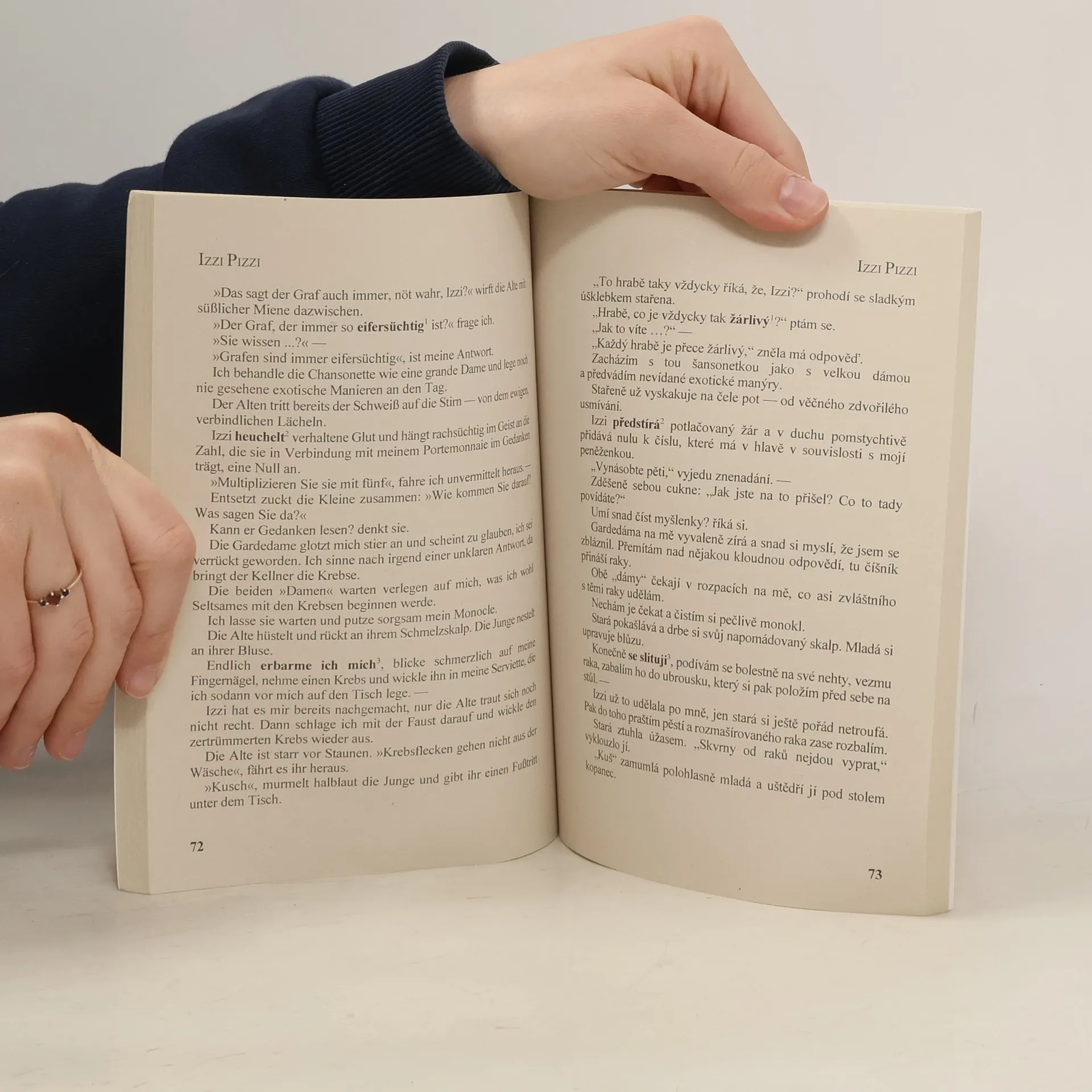 Výběr z povídek Gustava Meyrinka je zpracován zrcadlovým způsobem – na levé straně je původní text, na pravé straně pak překlad do češtiny, čímž odpadá pracné a zdlouhavé hledání ve slovníku. Méně obvyklé výrazy, ustálená rčení nebo slovní spojení jsou navíc v původním i přeloženém textu zvýrazněny.