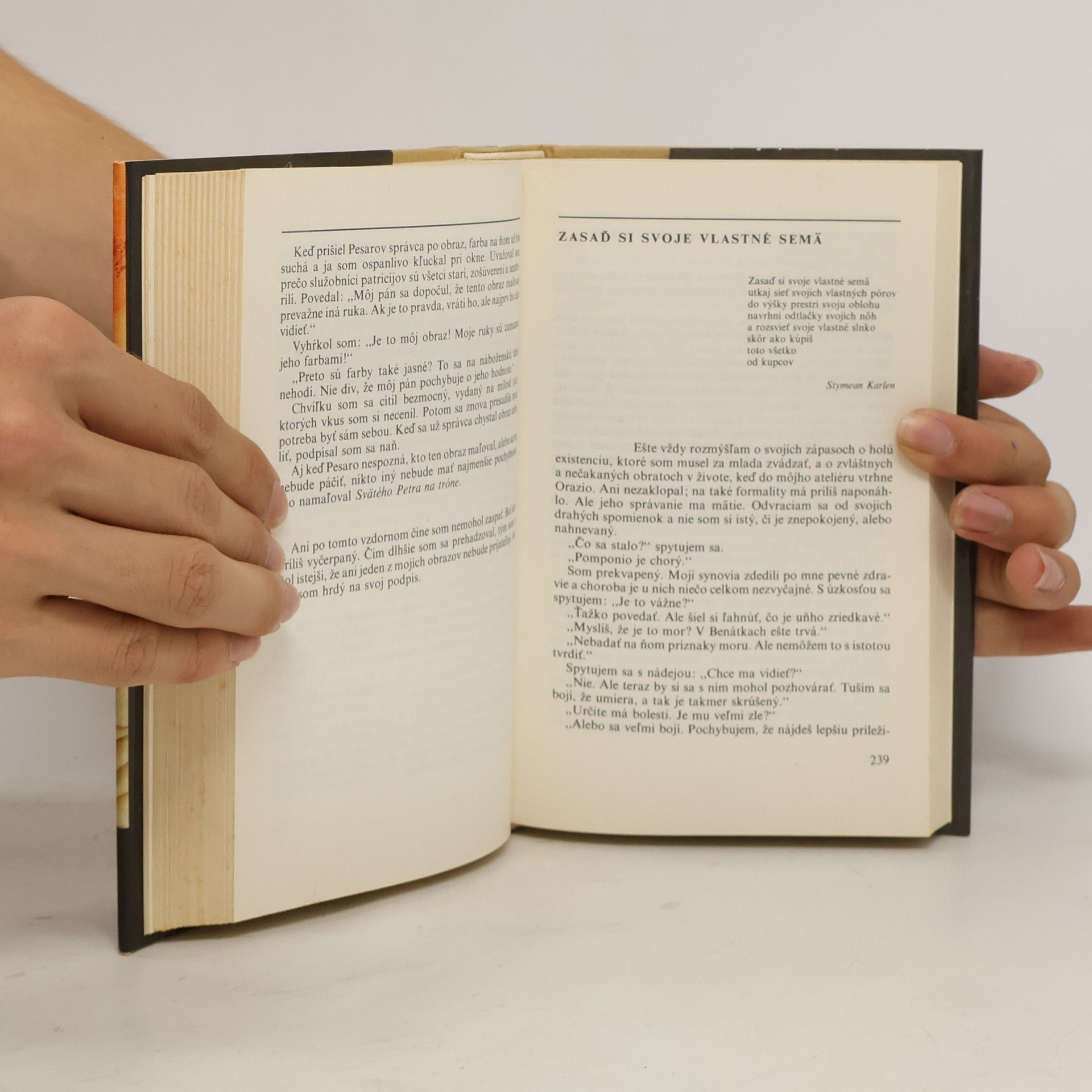 Pútavý román o velikánovi svetového maliarstva Tizianovi sleduje umelcove životné osudy na pozadí rušných udalostí renesančného Talianska. V prestávkach medzi maľovaním spomína slávny starec na svoju mladosť, lásky i umelecký vzostup. Oživuje si šťastné detstvo v rodnom Cadore, prvé očarenie Benátkami, svoje začiatky v mozaikárskej dielni, učňovské roky u bratov Belliniovcov, priateľstvo a spoluprácu s Giorgionem, ktorého postupne umelecky prevýši. Už v rannej mladosti dosahuje úspechy a uznania, maľuje cisára, kráľa, pápeža, dóžov a šľachticov, obrazy s náboženskými a mytologickými námetmi. Navzdory rozmarom mecenášov si vedel zachovať dostatok tvorivej slobody a maľoval nielen na objednávky, ale aj pre vlastné potešenie. Tizianove fiktívne spomienky vychádzajú z bohatej znalosti historických prameňov a umelecko-historickej literatúry a sú zaujímavým zhrnutím dlhého a plodného života génia svetového maliarstva. Autora, amerického spisovateľa D. Weissa, už pozná slovenský čitateľ z ďalšieho preloženého románu o Rodinovi Nahý som prišiel na svet.
