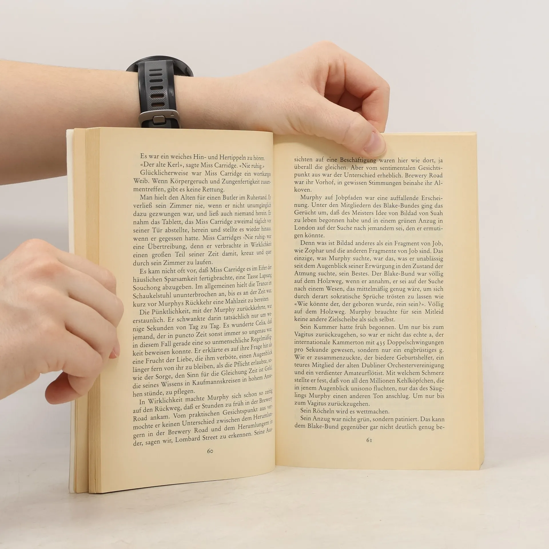 Bereits in seinem frühen Roman «Murphy» schreibt Samuel Beckett über das Thema, das ihn zeit seines Lebens beschäftigen sollte – die Absurdität des menschlichen Strebens. Ein junger Ire verbringt nackt, gefesselt und bewegungslos Stunden in einem Schaukelstuhl, um den Zwängen allen irdischen Seins in mystischer Versenkung zu entgehen. Die Liebe zu einer Prostituierten scheitert an seiner Weigerung, sich dem Diktat der alltäglichen Notwendigkeiten zu unterwerfen. Er verdingt sich als Hilfspfleger in einer Irrenanstalt, wo er sich mit den Insassen verbrüdert. «Murphy» bricht radikal mit den Gesetzmäßigkeiten und Sinnstiftungen des traditionellen Romans. Das Buch ist, wie es an einer Stelle heißt, «sorgfältig darauf zugeschnitten, den gebildeten Leser zu verderben».