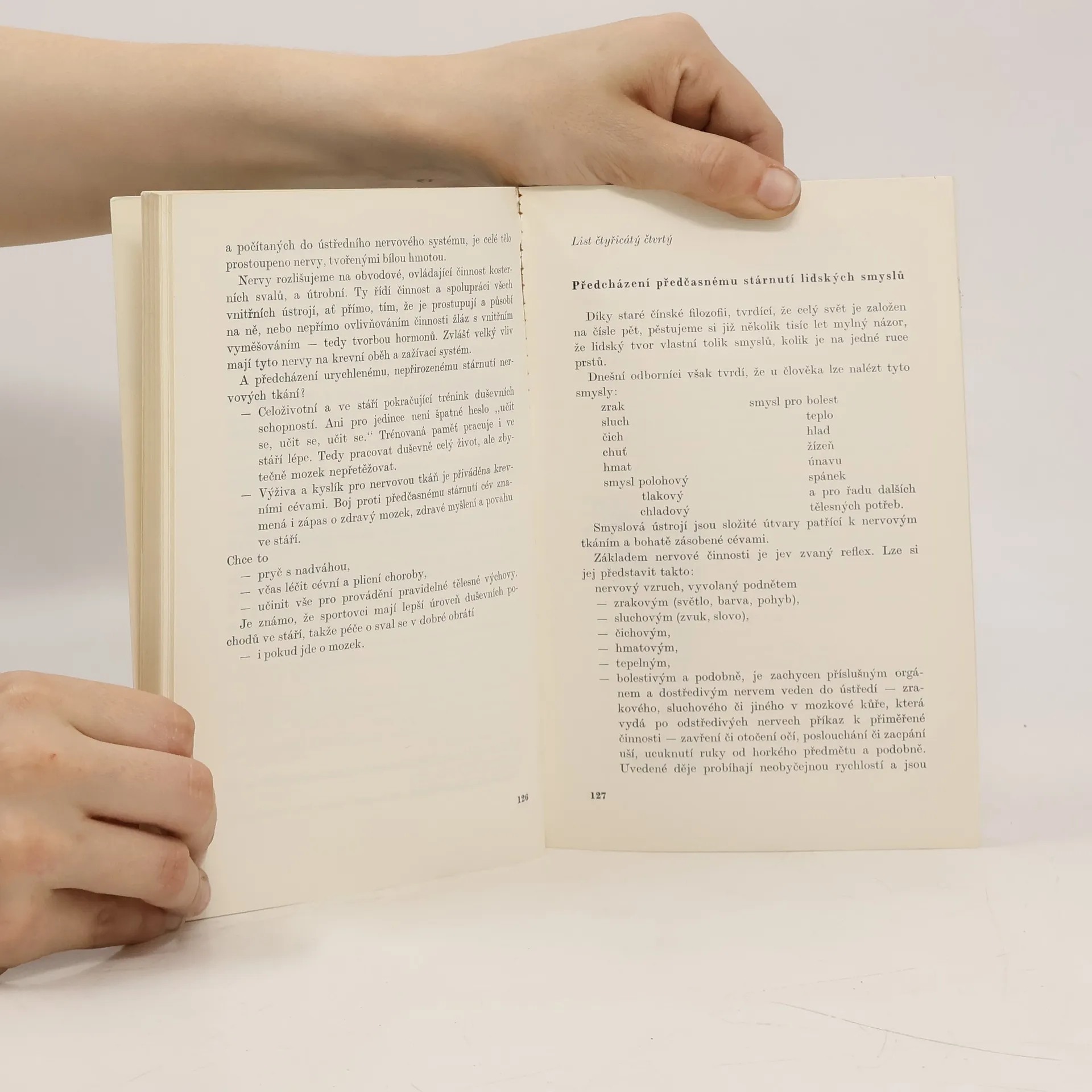 Vtipně, formou krátkých listů vypraví autor o poměru ke stáří u antických národů, o zevních a vnitřních činitelích ovlivňujících proces stárnutí a o dávné touze lidstva po prodloužení života. Upozorňuje na vhodný životní režim ve stáří.