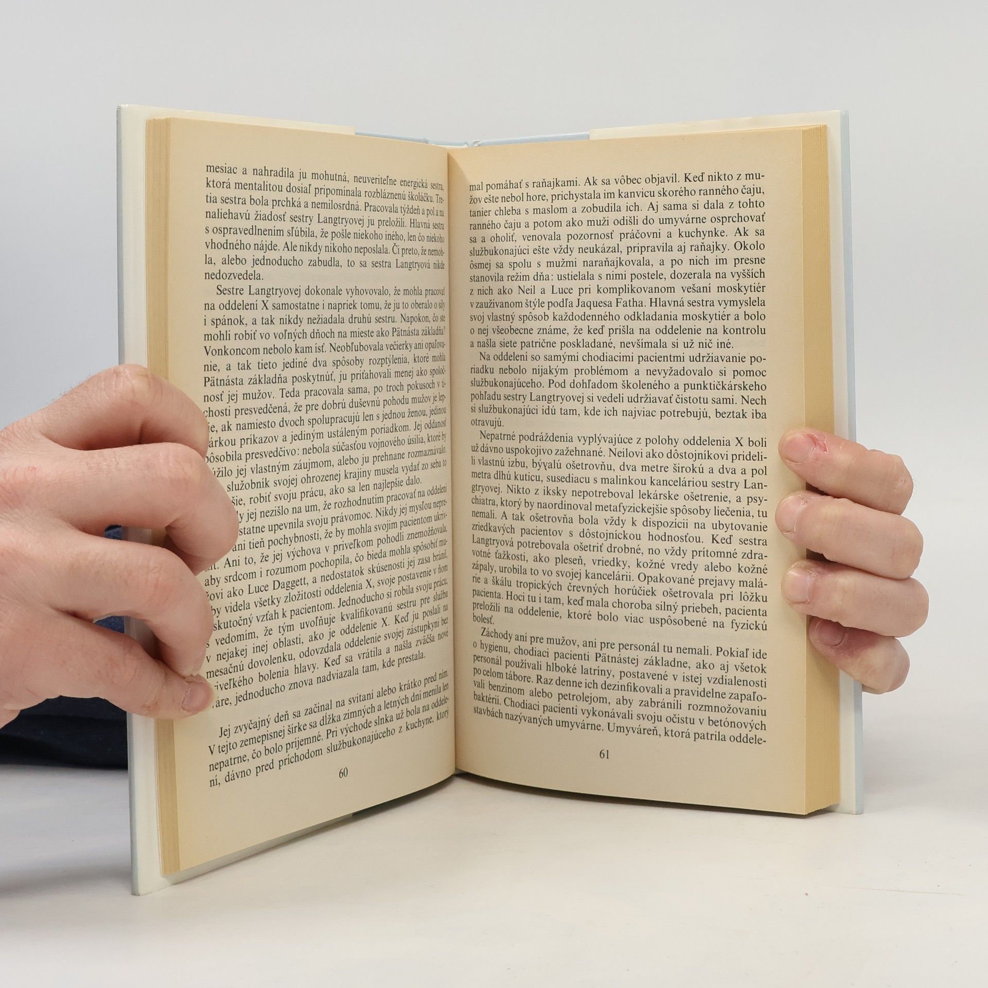 Psychologický román z doby krátko po ukončení 2. svetovej vojny sa odohráva v poľnej nemocnici na jednom z tichomorských ostrovov. Na malom psychiatrickom oddelení pracuje skúsená zdravotná sestra, ktorá sa snaží pre svojich pacientov urobiť všetko, čo je v jej silách a muži, ktorí prešli peklom vojny, ju oddane milujú...