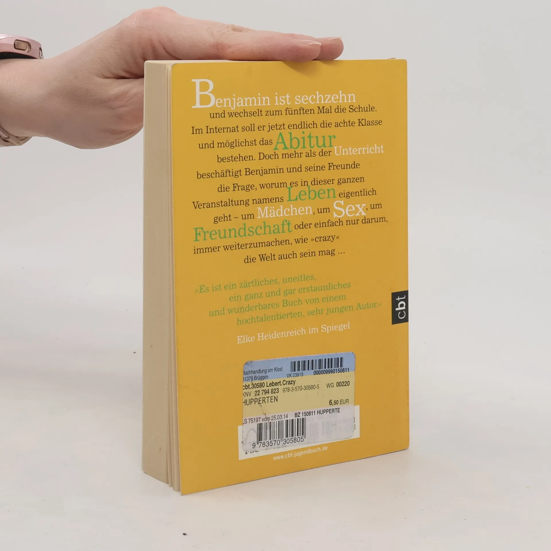 Der Coming-of-Age-Roman der jungen deutschen Literatur – endlich im Taschenbuch »Hallo Leute. Ich heiße Benjamin Lebert, bin sechzehn Jahre alt, und ich bin ein Krüppel. Nur damit ihr es wisst. Ich dachte, es wäre von beiderseitigem Interesse.« Mit diesen Worten stellt sich Benjamin Lebert an seinem ersten Schultag seinen neuen Mitschülern vor. Es ist sein fünfter Schulwechsel. Diesmal soll er endlich die 8. Klasse bestehen. Gemeinsam mit seinen Freunden übersteht Benjamin die Zeit im Internat. Bei allen Unternehmungen beschäftigt sie die Frage, worum es in dieser ganzen Veranstaltung namens Leben eigentlich geht …In seinem autobiographischen Roman »Crazy« erzählt der sechzehnjährige Benjamin Lebert mit erstaunlicher Wärme, großem Witz und einer guten Portion Selbstironie von der Schwierigkeit des Erwachsenwerdens.