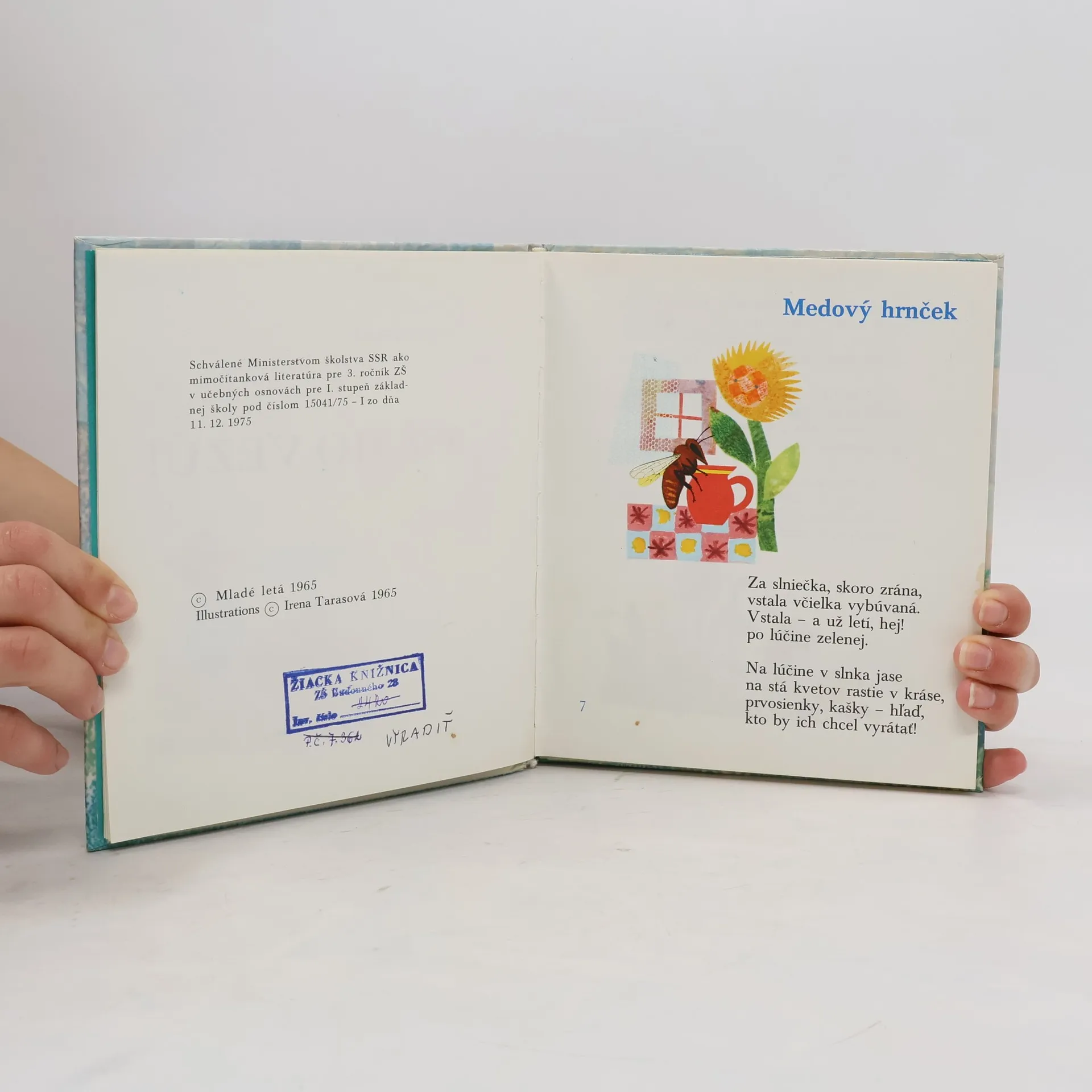 Bez básničiek Ľudmily Podjavorinskej by nemalo vyrásť ani jedno dieťa – veď sú plné radosti... Básničky: Medový hrnček, Klásky, Pyšný syseľ, Žabiatko, Pršalo zvečera, Novina, Na tanci, Muzikanti, Pán Lastovec, Staval vrabec, Jožkov žart, Plače vrana, Už ho vezú, Výplata, Divadlo, Raksa žení, Do školy, Svadba, Kmotry, Tanečnice, Čin-Čin-Čan, Gajdoš Muro, Tajnosť, Hav !, hav ! hav !, Haky-baky, Demikát, Svadba, Naša Mica, Prvý sneh, Sánkovačka, Prosba vtáčikov, Snehuliak, Pyšný pánko. Šieste vydanie. Cena knihy v čase vydania: 18.- Kčs.