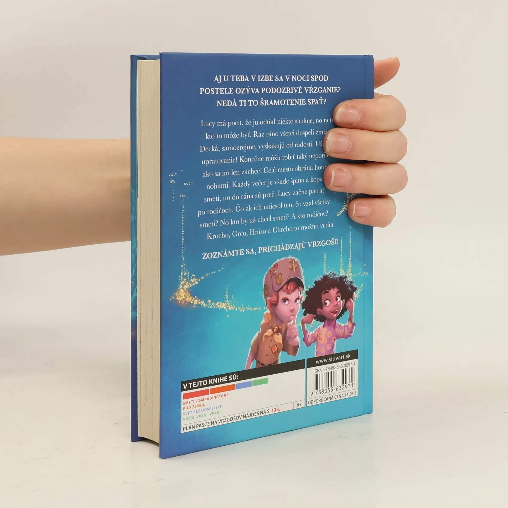 Počuli ste niekedy čudné vŕzganie, čo sa vám v noci ozýva spod postele? Nie ste zvedaví, čo to tam vŕzga? Lucy to vždy chcela vedieť. Stále má pocit, že ju odtiaľ niekto sleduje, ale nikdy nikoho nevidela. Až jedného rána zistí, že všetci dospelí zmizli. Decká sa tešia, konečne si môžu robiť, čo sa im zachce. Všade naokolo však zavládne zmätok nad zmätok, mesto je hore nohami. Lucy sa rozhodne zistiť, kam sa dospeláci podeli. Nedávno zmizol ocko a potom aj mama. To teda nie! Pôjde ich hľadať a privedie ich späť. Nič jej v tom nezabráni... nikto, iba ak by v tom boli... vrzgoši. Prvá časť série o malých vrzgošoch určite zaujme malých aj veľkých. Len aby niekam nezmizli.