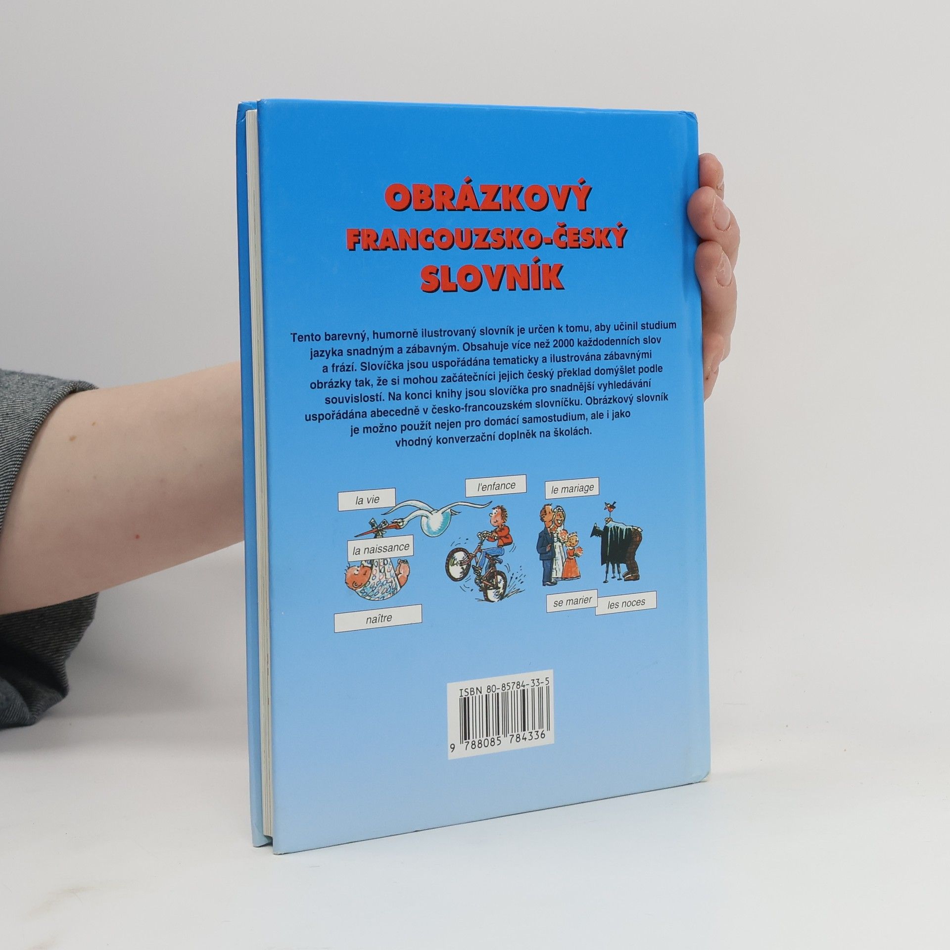 Tento barevný, humorně ilustrovaný slovník je určen k tomu, aby učinil studium jazyka snadným a zábavným. Obsahuje více než 2000 běžně používaných francouzských slov, slovních a větných spojení spolu se situačními obrázky, které pomohou lépe si zapamatovat slovíčka. Přímo u obrázků jsou slovíčka napsána v malých rámečcích a obláčcích. Na každé stránce jsou pak všechna ještě jednou souhrnně uvedena ve velkém rámečku společně s českým překladem. Obrázkový slovník neobsahuje žádnou gramatiku, má jednoduše dávat podnět k mluvení a napomáhat porozumění francouzskému textu. Lze jej použít bez jakýchkoliv předběžných znalostí francouzštiny, neboť obrázky mluví srozumitelnou řečí. Na konci knihy jsou slovíčka pro snadnější vyhledávání uspořádána abecedně v česko-francouzském slovníčku. Vzhledem k tomu, že francouzská výslovnost je pro začátečníka poměrně obtížná, je součástí závěrečného slovníčku také přepis výslovnosti. Obrázkový slovník je možno použít nejen pro domácí samostudium.