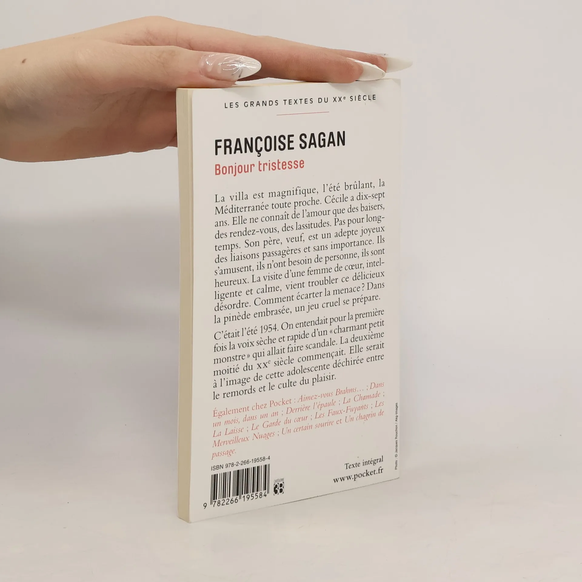 La villa est magnifique, l'été brûlant, la Méditerranée toute proche. Cécile a dix-sept ans. Elle ne connaît de l'amour que des baisers, des rendez-vous, des lassitudes. Pas pour longtemps. Son père, veuf, est un adepte joyeux des liaisons passagères et sans importance. Ils s'amusent, ils n'ont besoin de personne, ils sont heureux. La visite d'une femme de coeur, intelligente et calme, vient troubler ce délicieux désordre. Comment écarter la menace ? Dans la pinède embrasée, un jeu cruel se prépare. C'était l'été 1954. On entendait pour la première fois la voix sèche et rapide d'un " charmant petit monstre " qui allait faire scandale. la deuxième moitié du XXe siècle commençait. Elle serait à l'image de cette adolescente déchirée entre le remords et le culte du plaisir.