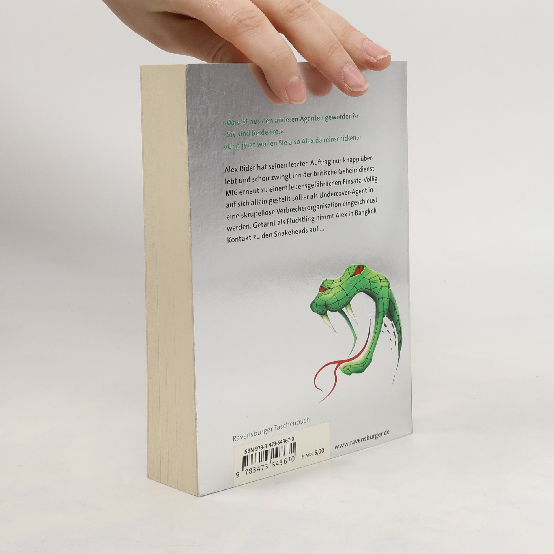 Kaum ist Alex RiderTM aus dem Weltraum zurück, kommt er einer skrupellosen Verbrecherorganisation auf die Spur. Kein Geschäft ist Snakehead zu schmutzig: Sie handeln mit Drogen, verdienen Unsummen mit blutigen Kämpfen, schmuggeln Menschen in andere Länder und verkaufen Organe. Als illegaler Einwanderer getarnt, spioniert Alex Snakehead aus und geht dabei an die Grenzen seiner Kräfte ...
