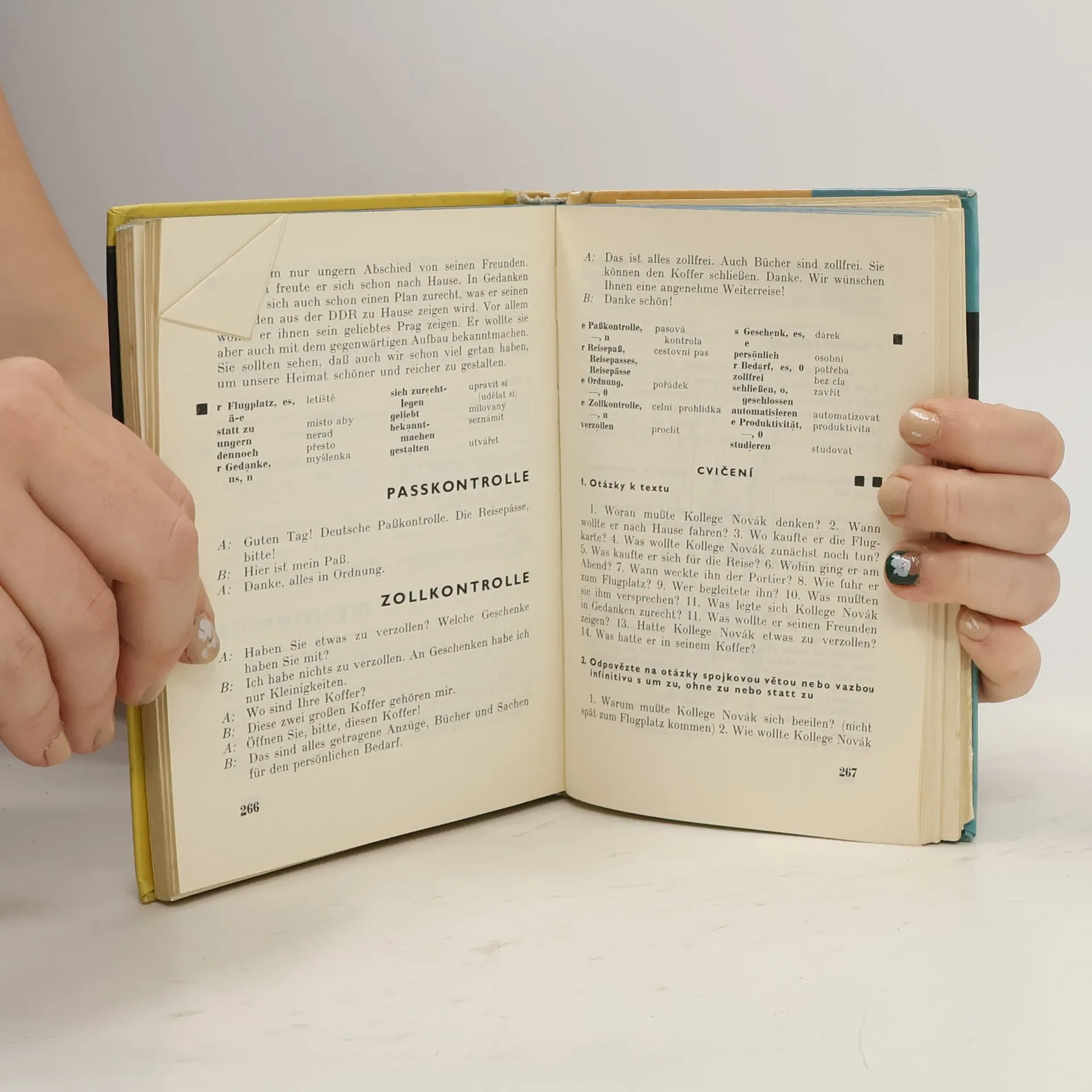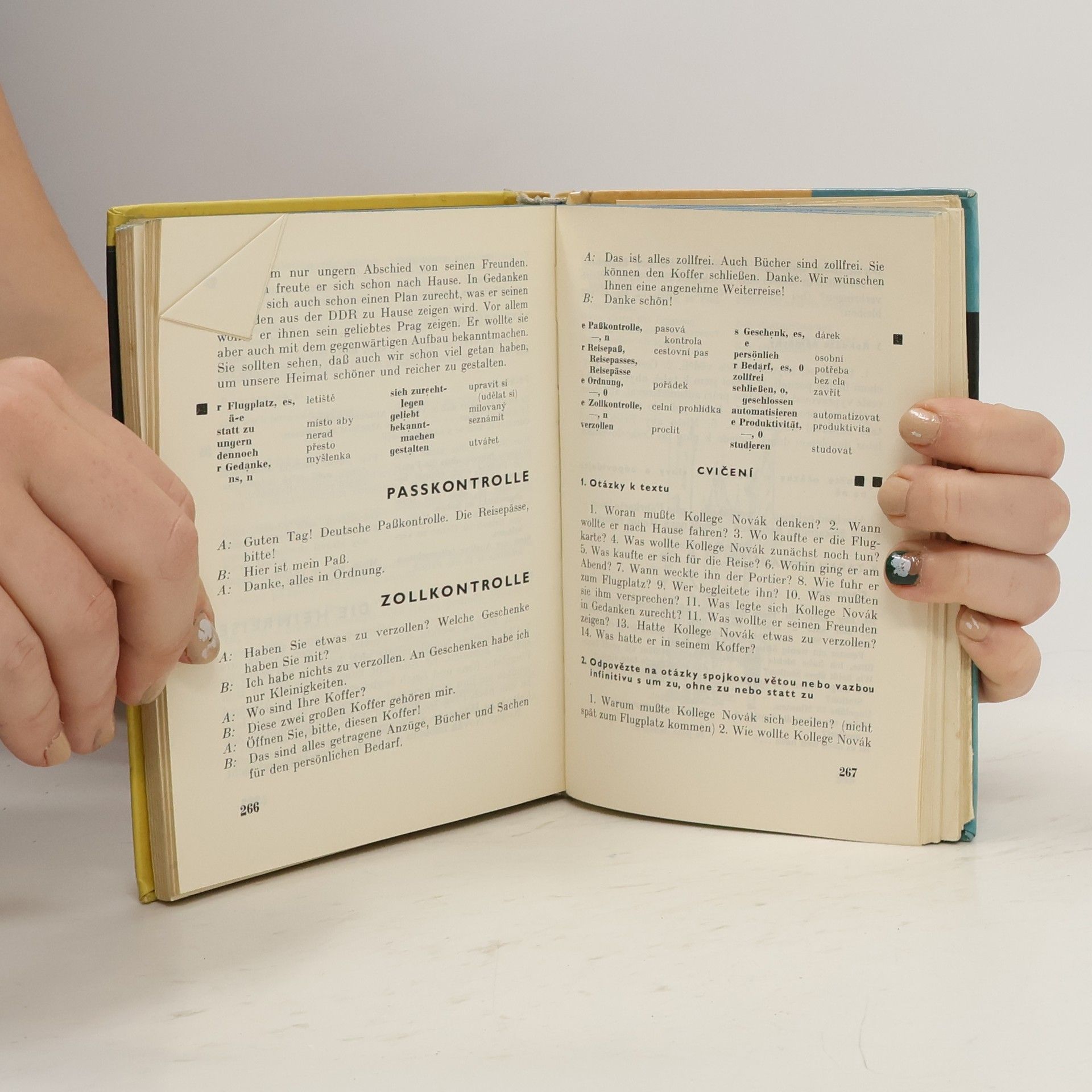 Látka je rozvržena do 34 lekcí, z nichž každá obsahuje úvodní text, mluvnici a cvičení a je zakončena výběrem různých rčení k zapamatování. K učebnici je připojen systematický přehled mluvnice. Ilustrace Josef Říha. 1. vydání.