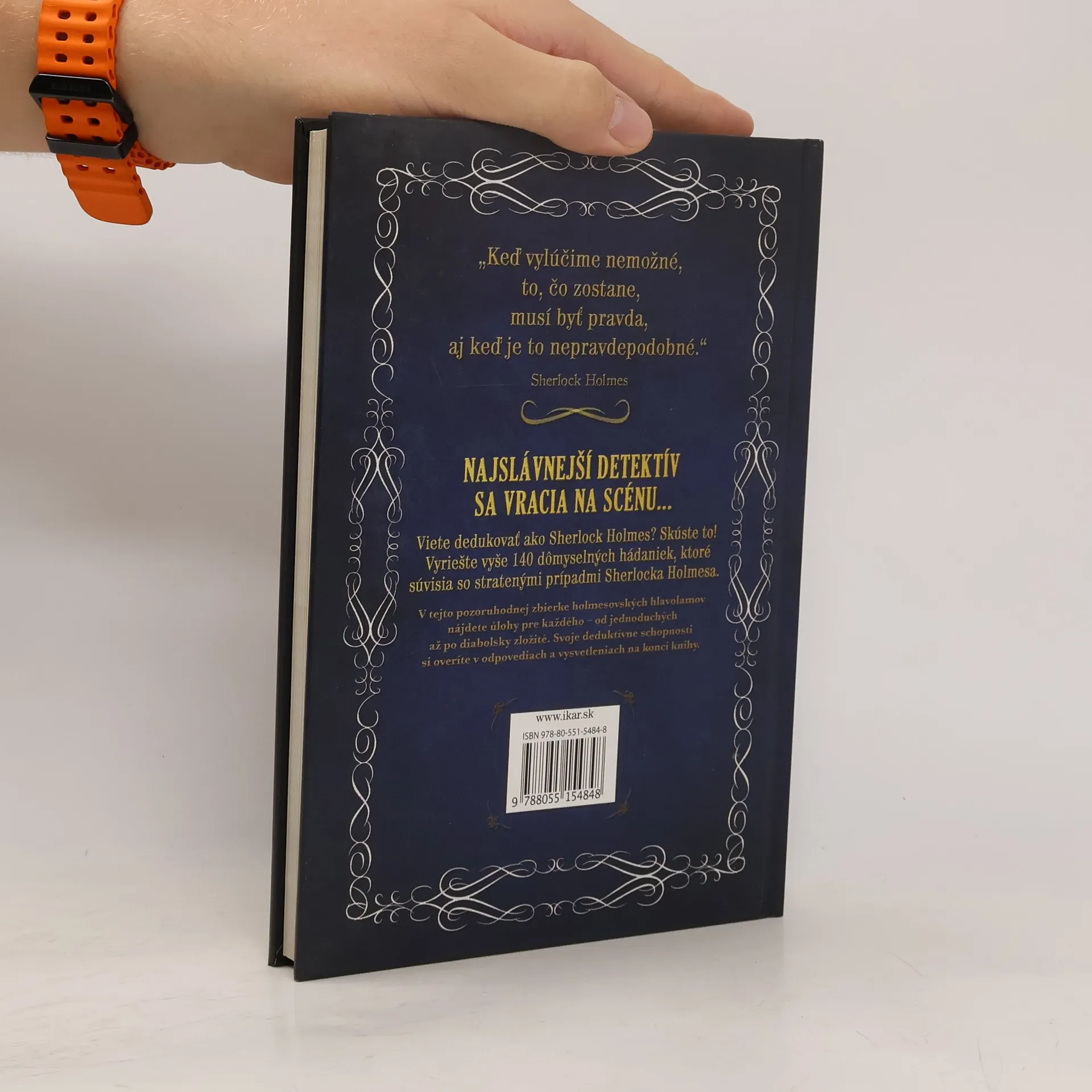 Najslávnejší detektív sa vracia na scénu. Viete dedukovať ako Sherlock Holmes? Skúste to! Vyriešte vyše 140 dômyselných hádaniek, ktoré súvisia so stratenými prípadmi Sherlocka Holmesa. V tejto pozoruhodnej zbierke holmesovských hlavolamov nájdete úlohy pre každého – od jednoduchých až po diabolsky zložité. Svoje deduktívne schopnosti si overíte v odpovediach a vysvetleniach na konci knihy.