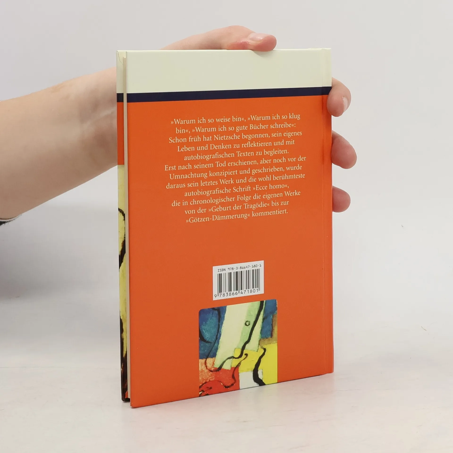 'Warum ich so weise bin', 'Warum ich so klug bin', 'Warum ich so gute Bücher schreibe': Schon früh hat Nietzsche begonnen, sein eigenes Leben und Denken zu reflektieren und mit autobiographischen Texten zu begleiten. Erst nach seinem Tod erschienen, aber noch vor der Umnachtung konzipiert und geschrieben wurde daraus sein letztes Werk und die wohl berühmteste autobiographische Schrift 'Ecce homo', die in chronologischer Folge die eigenen Werke von der 'Geburt der Tragödie' bis zur 'Götzen-Dämmerung' kommentiert.