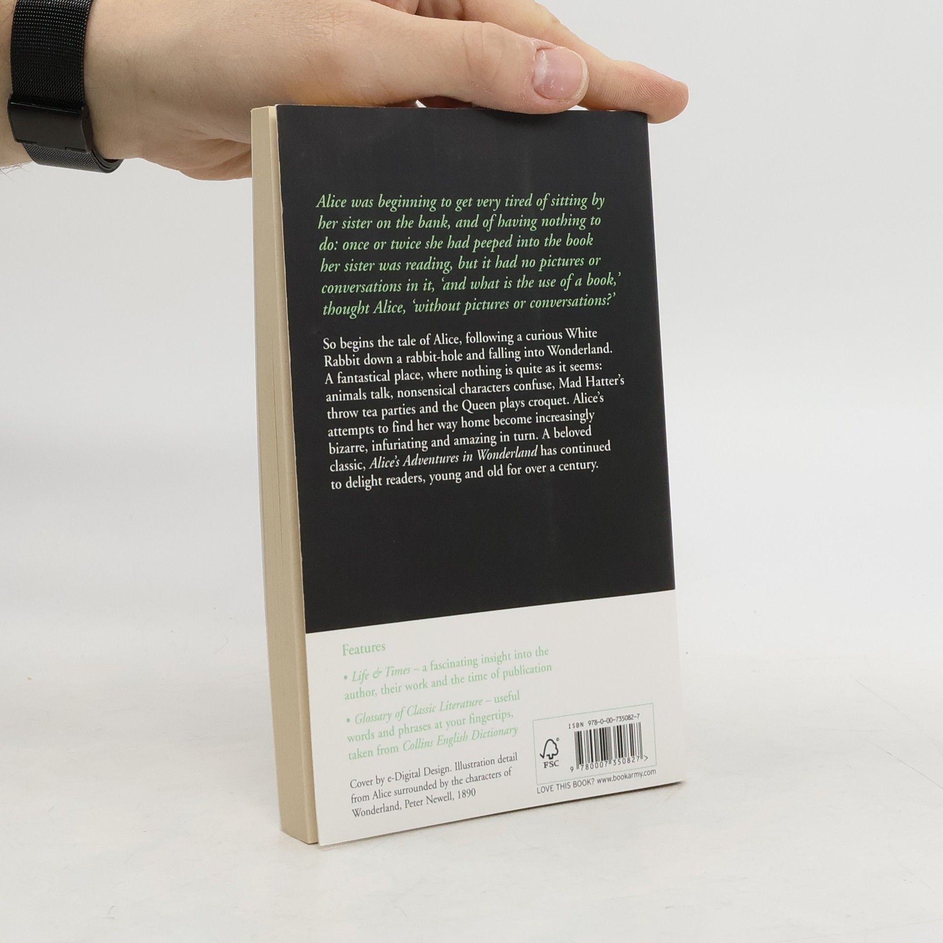HarperCollins is proud to present its range of best-loved, essential classics. 'Alice was beginning to get very tired of sitting by her sister on the bank, and of having nothing to do: once or twice she had peeped into the book her sister was reading, but it had no pictures or conversations in it, "and what is the use of a book," thought Alice, "without pictures or conversations?"' So begins the tale of Alice, who follows a curious White Rabbit down a hole and falls into Wonderland, a fantastical place where nothing is quite as it seems: animals talk, nonsensical characters confuse, Mad Hatters throw tea parties and the Queen plays croquet. Alice's attempts to find her way home become increasingly bizarre, infuriating and amazing in turn. A beloved classic, Alice's Adventures in Wonderland has continued to delight readers, young and old, for over 150 years.