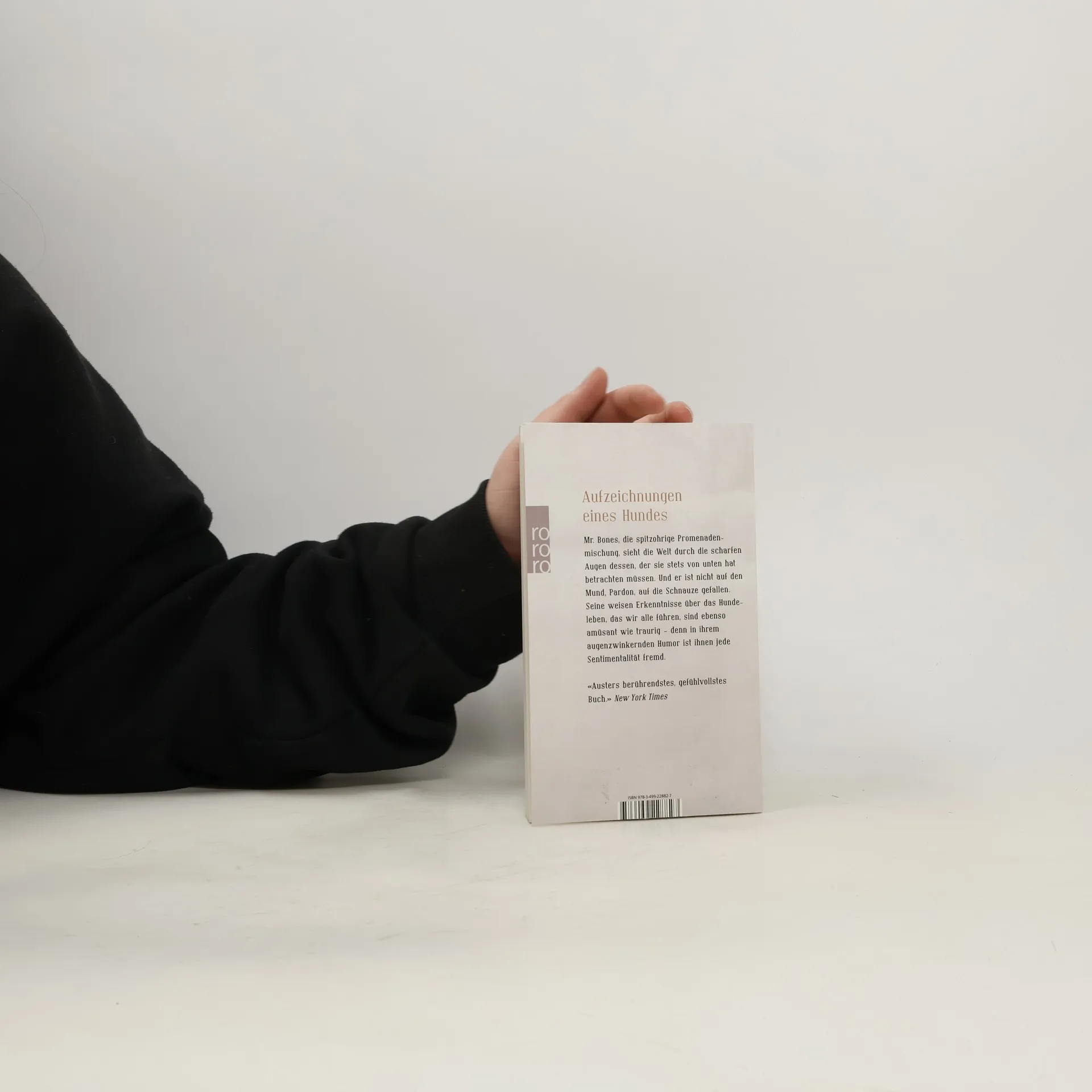Aufzeichnungen eines Hundes Mr. Bones, die spitzohrige Promenadenmischung, sieht die Welt durch die scharfen Augen dessen, der sie stets von unten hat betrachten müssen. Und er ist nicht auf den Mund, Pardon, auf die Schnauze gefallen. Seine weisen Erkenntnisse über das Hundeleben, das wir alle führen, sind ebenso amüsant wie traurig — denn in ihrem augenzwinkernden Humor ist ihnen jede Sentimentalität fremd. «Austers berührendstes, gefühlvollstes Buch.» ( New York Times )