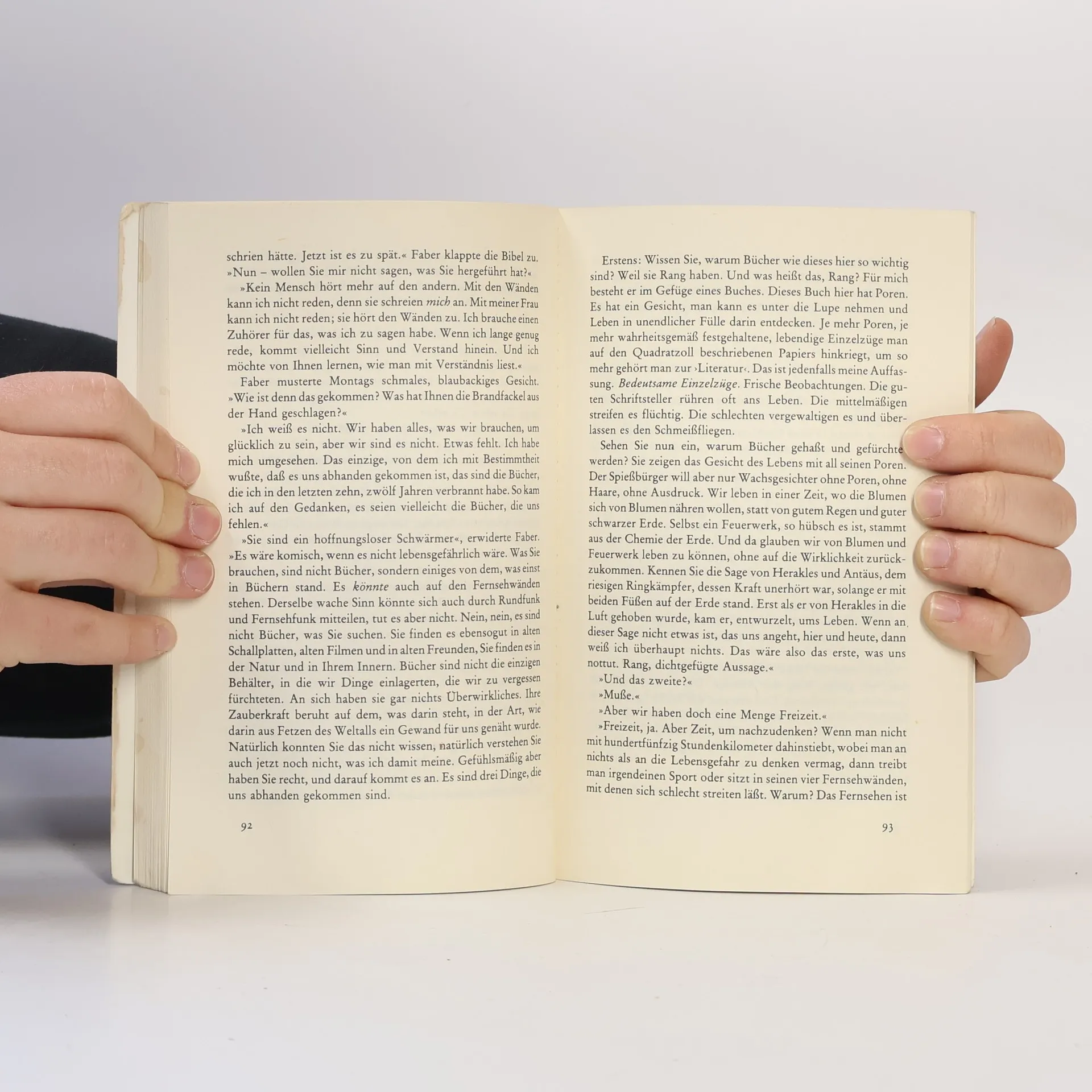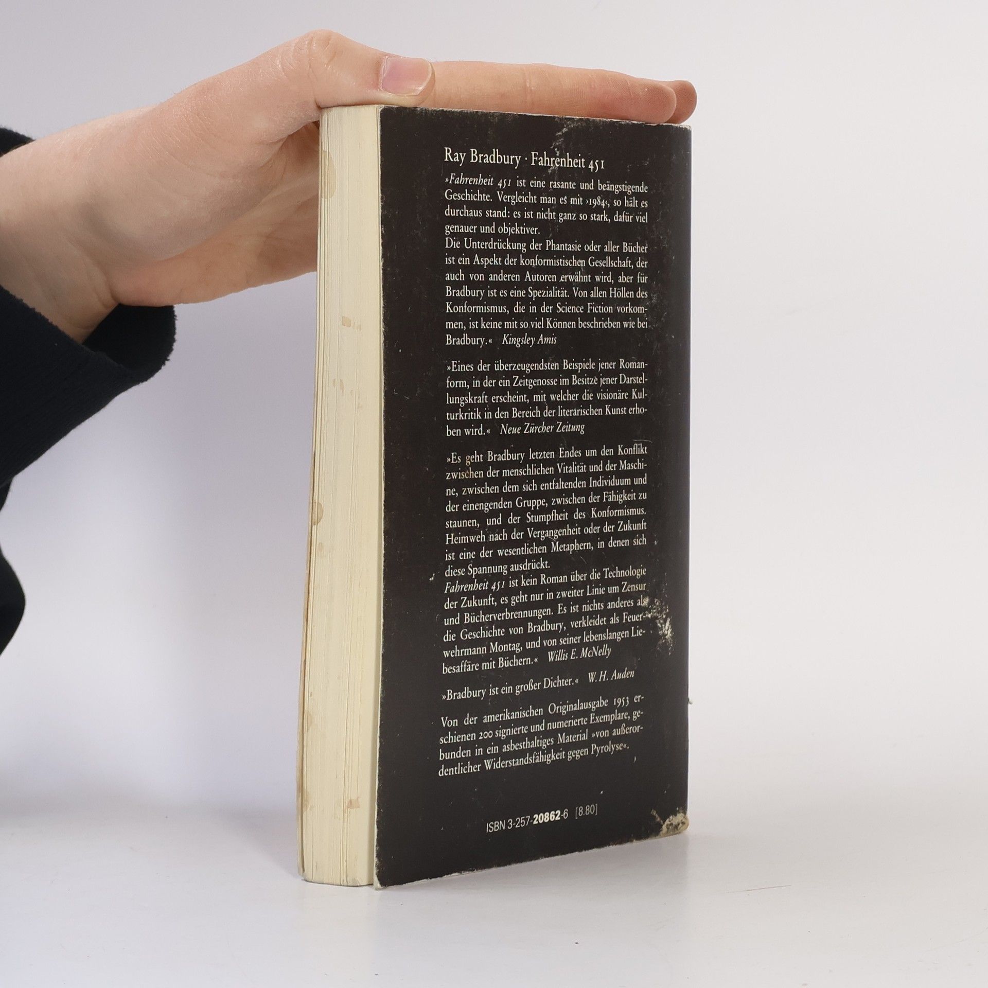 Fahrenheit 451 ist die Temperatur, bei der »Bücherpapier Feuer fängt und verbrennt«. In Ray Bradburys Zukunftsvision ist die Feuerwehr nicht mehr mit Wasserspritzen ausgerüstet, sondern mit Flammenwerfern, die genau diesen Hitzegrad erzeugen, um die letzten Zeugnisse individualistischen Denkens die Bücher zu vernichten. Da beginnt der Feuerwehrmann Guy Montag, sich Fragen zu stellen Die beängstigende Geschichte von einer Welt, in der das Bücherlesen mit Gefängnis und Tod bestraft wird, ist ein zeitloses Plädoyer für das freie Denken.