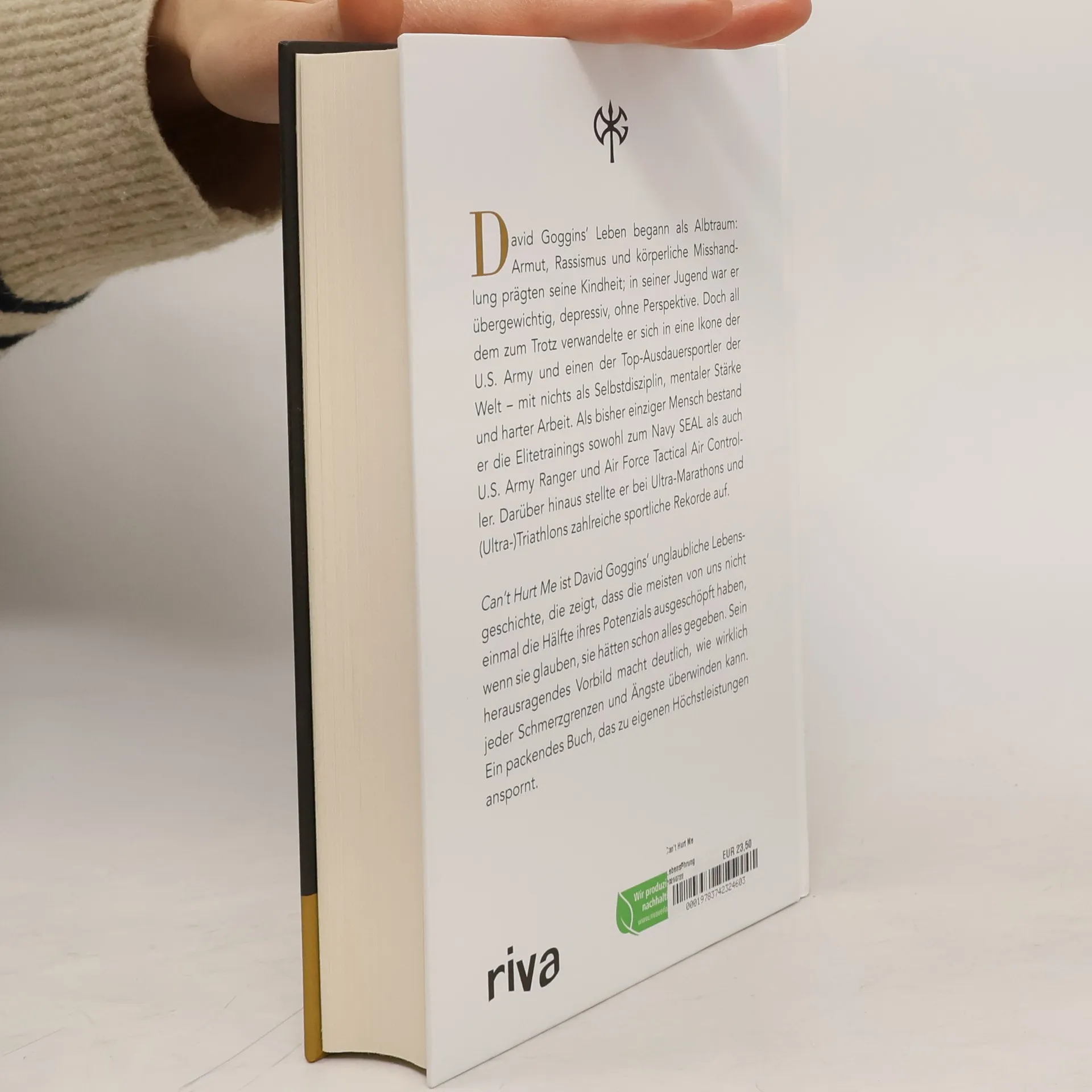 Für David Goggins war die Kindheit ein Albtraum – Armut, Vorurteile und körperliche Misshandlung verfolgten ihn bis in seine Träume. Doch durch Selbstdisziplin, mentale Stärke und harte Arbeit verwandelte er sich vom depressiven, übergewichtigen Jugendlichen ohne Perspektive in eine Ikone der U. S. Army und einen der Top-Ausdauersportler der Welt. Er ist der Einzige, der je das Elitetraining sowohl zum Navy SEAL als auch U. S. Army Ranger und Air Force Tactical Air Controller bestand, außerdem stellte er zahlreiche Ausdauerrekorde auf. In »Can’t Hurt Me« erzählt er seine wahrlich erstaunliche Lebensgeschichte und zeigt, dass die meisten von uns nicht einmal die Hälfte ihres Potenzials ausschöpfen. Goggins bezeichnet dies als 40-Prozent-Regel. Sein herausragendes Beispiel veranschaulicht hingegen, wie es jedem gelingen kann, das zu ändern und Schmerzgrenzen und Ängste zu überwinden.