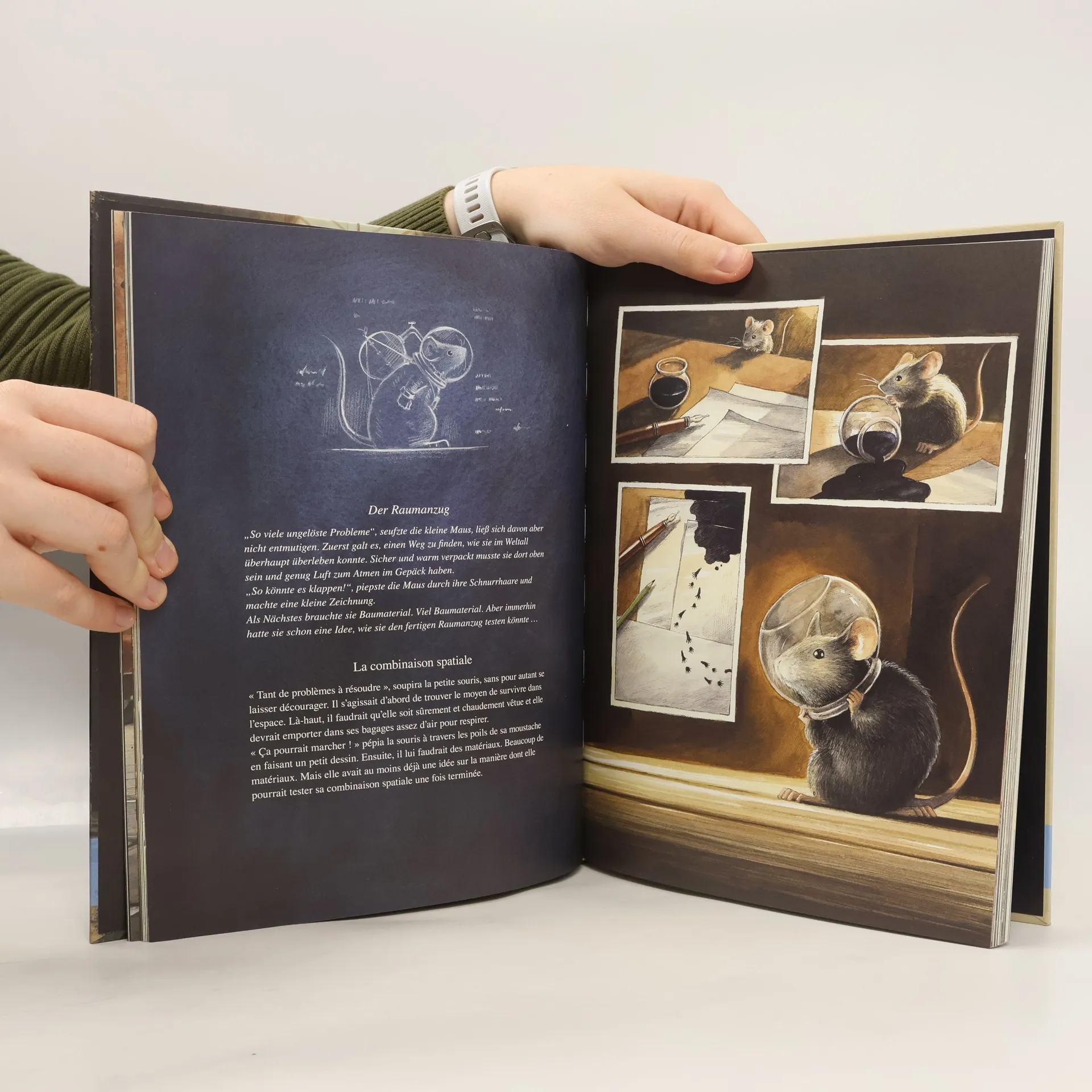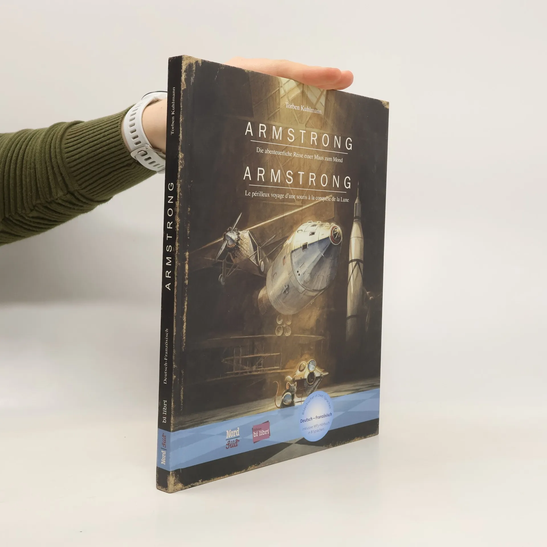 Zweisprachiges Kinderbuch Deutsch-Französisch ab 6 Jahren Amerika in den 1950er Jahren… Eine kleine, wissbegierige Maus beobachtet jede Nacht den Mond durch ein Fernrohr, während ihre Artgenossen einem höchst unwissenschaftlichen Käsekult verfallen sind. Kann der Mond wirklich aus Käse sein? Angespornt durch die Pionierleistungen der Mäuseluftfahrt, beschließt die kleine Maus, der Frage auf den Grund zu gehen. Sie fasst einen großen Entschluss: Sie wird als erste Maus zum Mond fliegen! Auch in seinem zweiten großen Abenteuer einer kleinen Maus zeigt Torben Kuhlmann seine ganze Meisterschaft sowohl als Illustrator als auch als raffinierter Erzähler.