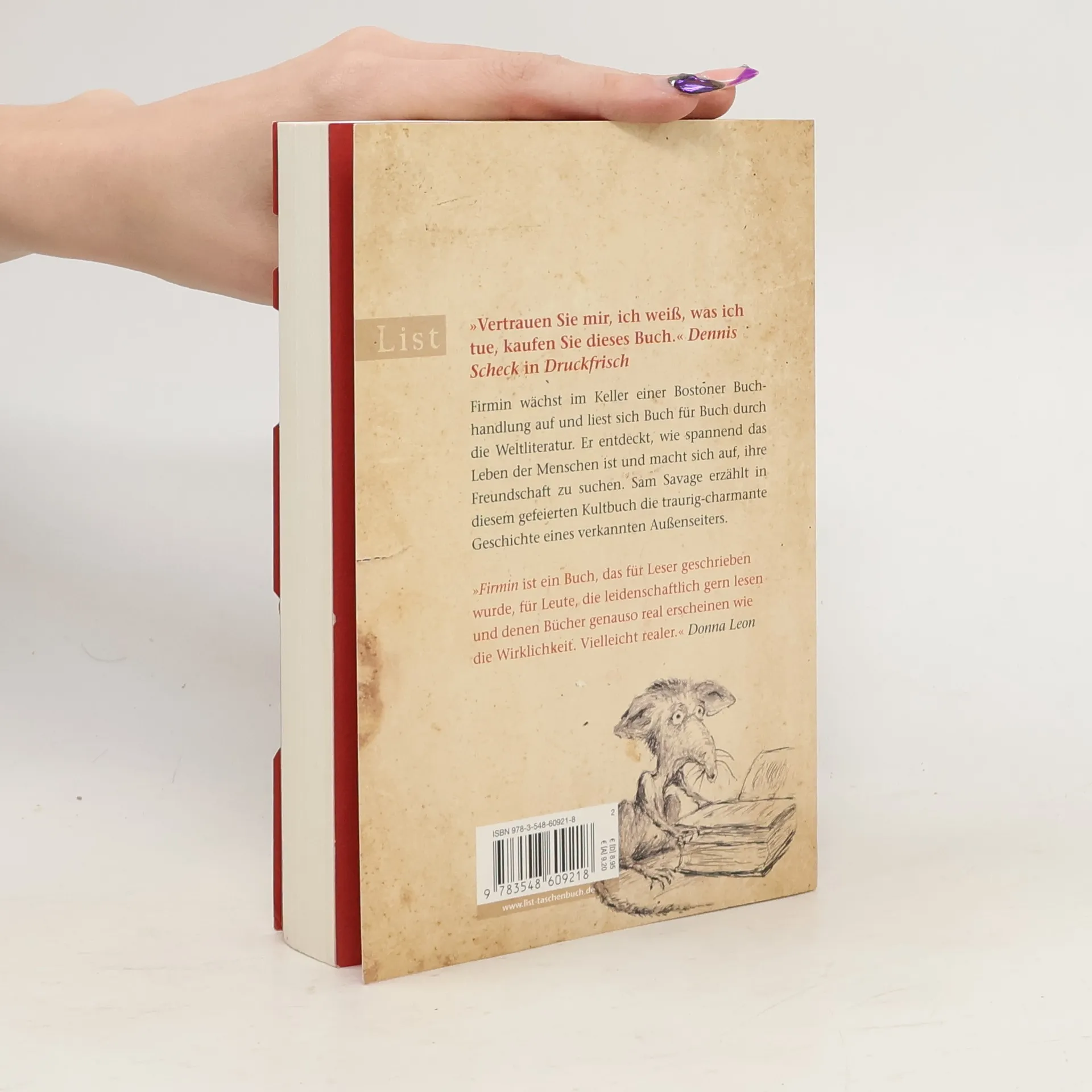 Firmin wächst im Keller einer Bostoner Buchhandlung auf und liest sich Buch für Buch durch die Weltliteratur. Er entdeckt, wie spannend das Leben der Menschen ist, und macht sich auf, ihre Freundschaft zu suchen. Sam Savage erzählt in diesem gefeierten Kultbuch die traurig-charmante Geschichte eines verkannten Außenseiters.