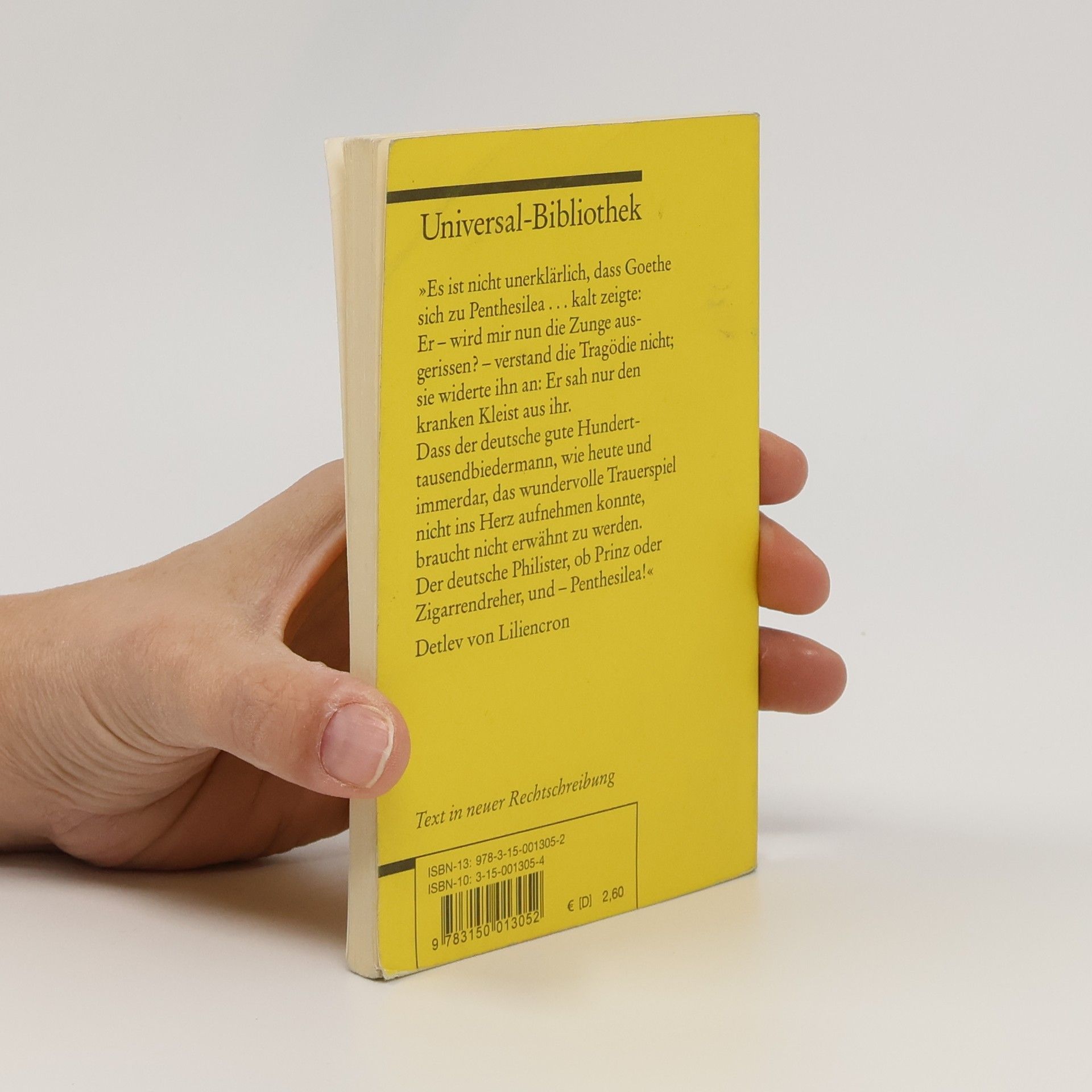 Heinrich von Kleists 1808 erschienenes Trauerspiel 'Penthesilea' bearbeitet einen Stoff aus der griechischen Mythologie: das tödliche Zusammentreffen zwischen dem Griechenhelden Achilles und der Amazonenkönigin Penthesilea auf dem Schlachtfeld vor Troja. Kleists grausames Drama bildet ein Gegengewicht zu den idealisierenden Antikevorstellungen seiner Zeit und wurde nach seinem Erscheinen heftig kritisiert und abgelehnt. Mit seinen 24 Auftritten von unterschiedlicher Länge und ohne Akteinteilung folgt Kleists Trauerspiel weder antiken noch zeitgenössischen Vorbildern; zudem nimmt die „verdeckte Handlung“, die über Boten oder Beobachter mitgeteilt wird, einen wesentlich größeren Raum ein als die direkte Handlung. Bis heute bezieht Kleists 'Penthesilea' seine Wirkung aus der Anlage als psychologisches Seelendrama, in der Liebe und Hass, Erotik und Aggression aufs Engste verflochten sind. Text in neuer Rechtschreibung. - Mit Anmerkungen von Hedwig Appelt und Maximilian Nutz.
