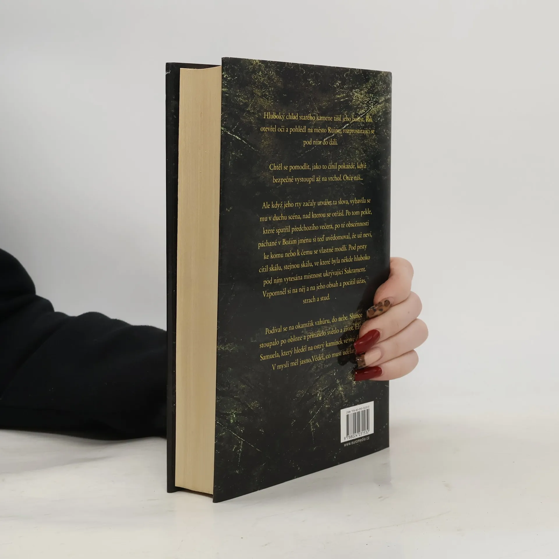 Mysteriózní thriller o hrůzyplném tajemství, které střeží podivný mnišský řád sídlící v tisíce let staré svatyni v nitru hory – a které je nyní blízko prozrazení. Celý svět totiž skrze televizní kamery přihlíží, jak neznámý mladý mnich vyšplhá na vrcholek citadely, stojí zde několik hodin s rozpaženýma rukama, a potom skočí. Na co chtěl svou smrtí upozornit? Proč se mniši snaží chránit své tajemství, svůj Sakrament, jakýmikoliv prostředky? A co je oním Sakramentem, který obyvatelům hory záhadně prodlužuje život? Odpověď sahá až do časů stvoření světa