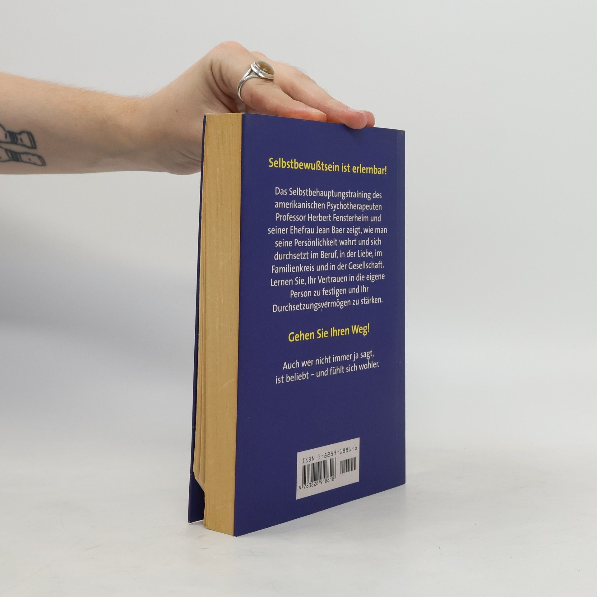 Seit Jahrzenten erfolgreich: das Standardwerk zum Thema Selbstbewusstsein Selbstsicherheit kann man lernen – mit dem Training des amerikanischen Psychotherapeuten Professor Herbert Fensterheim und der Journalistin Jean Baer. Das Programm, mit dem sie schon Millionen Menschen geholfen haben, demonstriert, wie man das Vertrauen in die eigene Person stärkt und sich durchsetzt – im Beruf, in der Liebe, im Familienkreis, in der Gesellschaft.