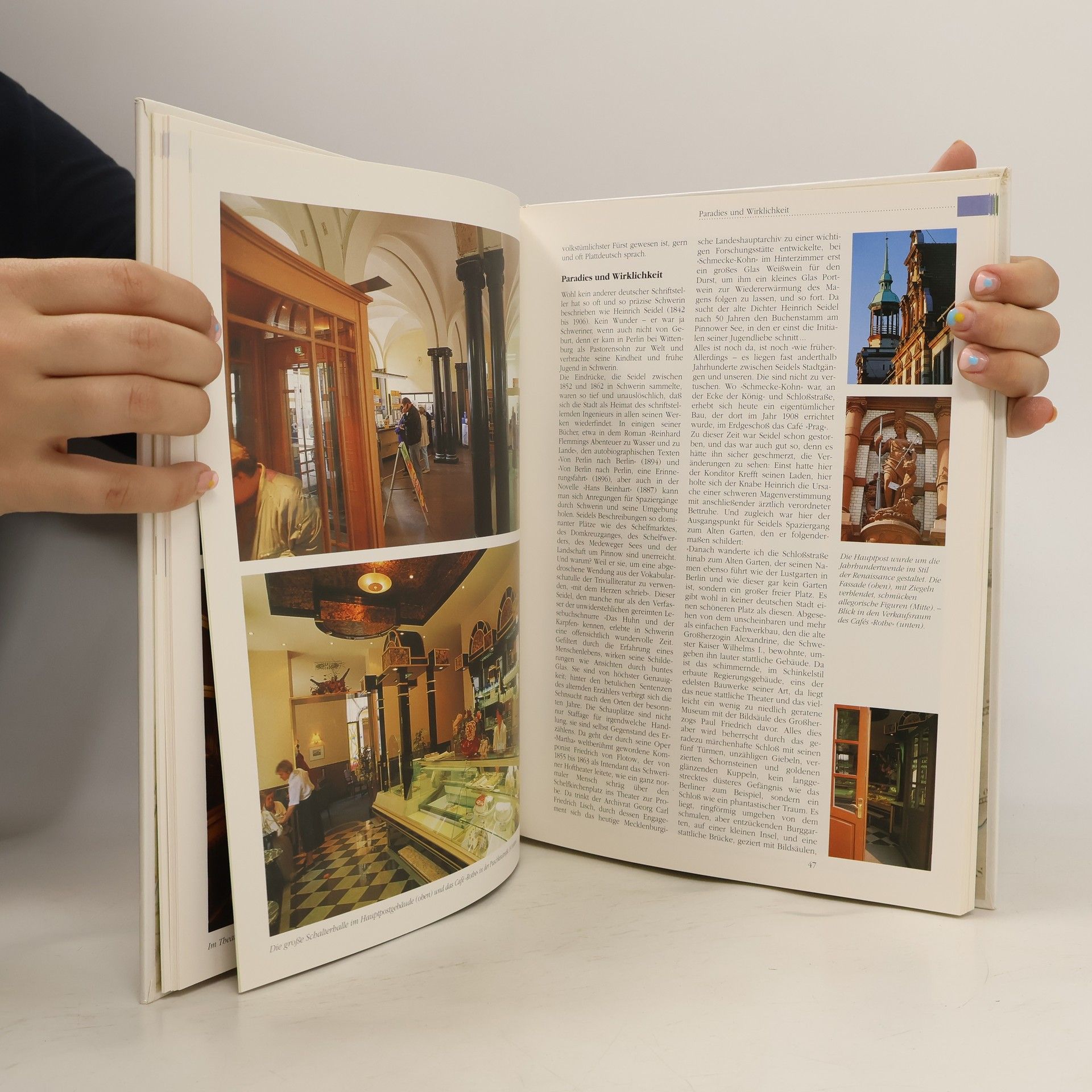 Schwerins Stadtbild ist einzigartig und faszinierend, denn die weitgedehnten und vielfältig gebuchteten Wasserflächen reichen bis ins Zentrum der klassizistischen Innenstadt. Eigentlich muß es heißen: bis in die Zentren. Schwerin hat nämlich drei wesentliche Kristallisationspunkte: Zunächst ist da der Marktplatz mit dem Säulengebäude, dem Demmlerschen Rathaus und dem mächtigen Dom. Dann das Schloßrevier, das 'Regierungsviertel' mit dem Schloß, dem Kollegiengebäude, dem alten Palais, dem Staatstheater und dem Museumsgebäude, geöffnet nach Osten auf den sich weithin streckenden See. Und drittens das Pfaffenteichareal mit seiner fast strengen Umbauung und seinen Lindensäumen. Wer nach Schwerin kommt, erlebt das lange verachtete Flair des 19. Jahrhunderts ziemlich unmittelbar. Besonders das hinreißende Schloß, das nach jahrhundertelanger Vernachlässigung von Demmler, Stuler und Semper in der Mitte des vorigen Jahrhunderts zu strahlender Wiedergeburt erweckt wurde, erzeugt mit seinem Charme große, nachhaltige Wirkung. Alles ist hier auf den Zusammenklang von Landschaft und Menschenwerk hin komponiert. In zahlreichen Bildern führt dieses Portrai den Leser durch die Stadt Schwerin zu den wichtigsten Sehenswürdigkeiten, aber auch in weniger bekannte Viertel.