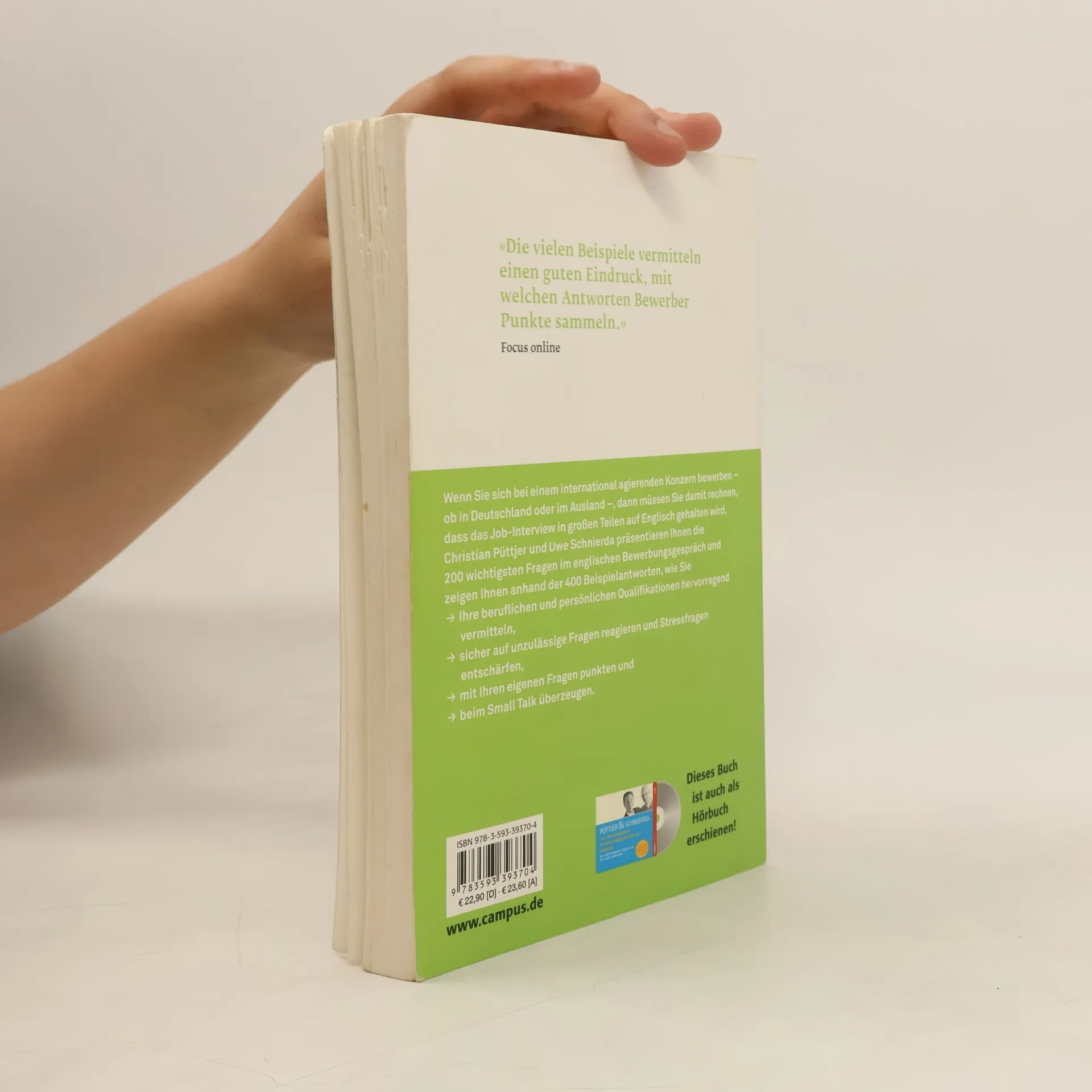 Wer sich bei einem international agierenden Konzern bewirbt – ob in Deutschland oder im Ausland –, muss damit rechnen, dass das Jobinterview in großen Teilen auf Englisch gehalten wird. Eine gründliche Vorbereitung auf diese Herausforderung ist also unerlässlich. Christian Püttjer und Uwe Schnierda präsentieren die 200 wichtigsten Fragen im Bewerbungsgespräch. Sie geben jeweils eine richtig gute und eine nicht ganz so gut Beispielantwort – alles auf Englisch. Zusätzlich gibt es eine Aufstellung der wichtigsten Vokabeln und Redewendungen, mit der die Vorbereitung mit Sicherheit gelingt.